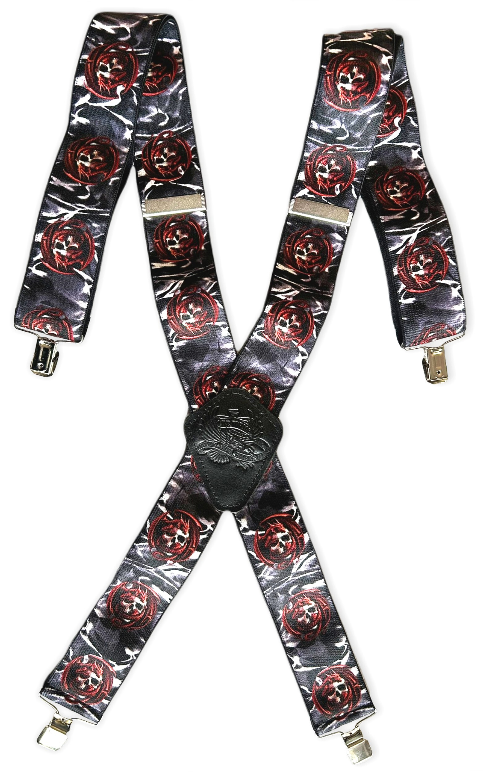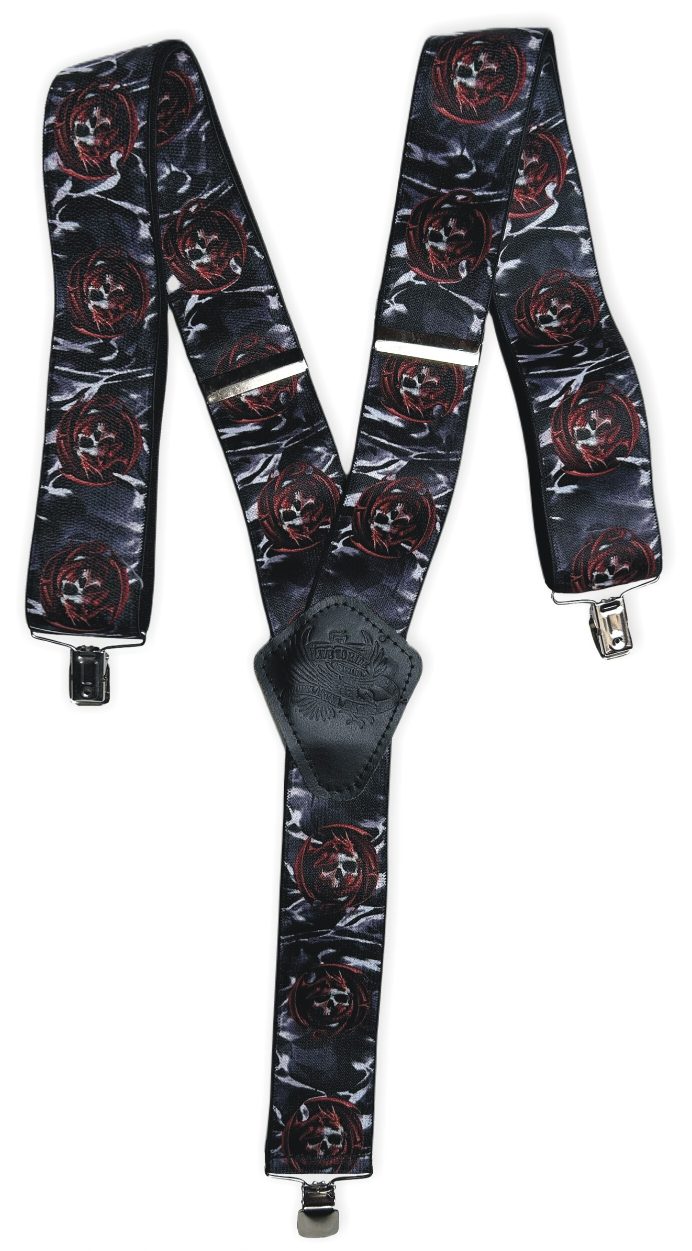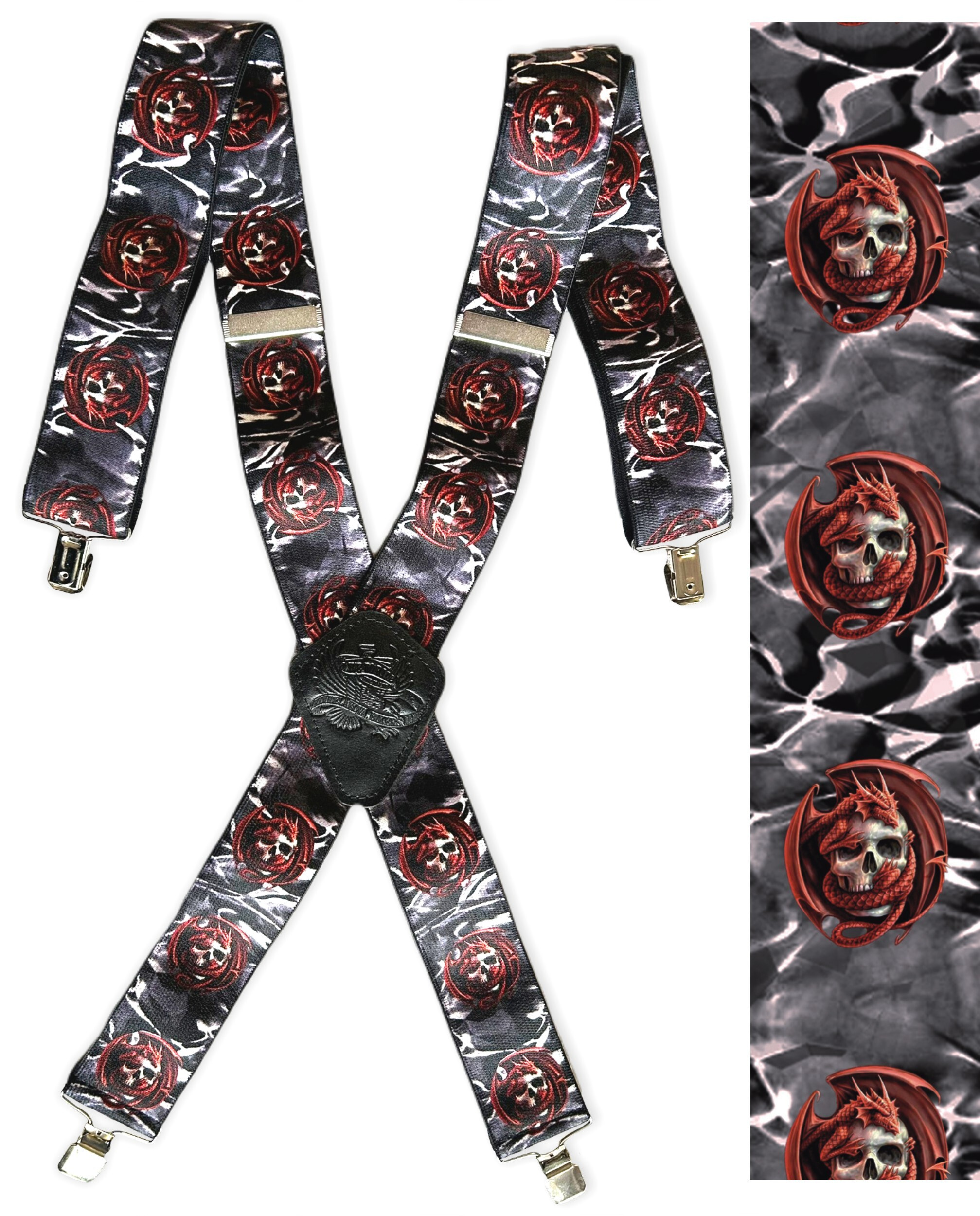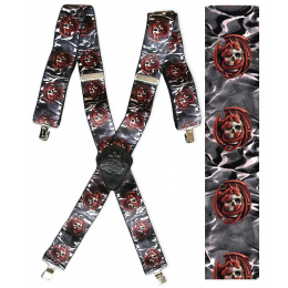Pružné kšandy s potiskem. Libovolně nastavitelné. Připnutí ke kalhotám je tvořeno kovovými sponkami, které jsou ozubené a tudíž výborně drží a nepovolí.