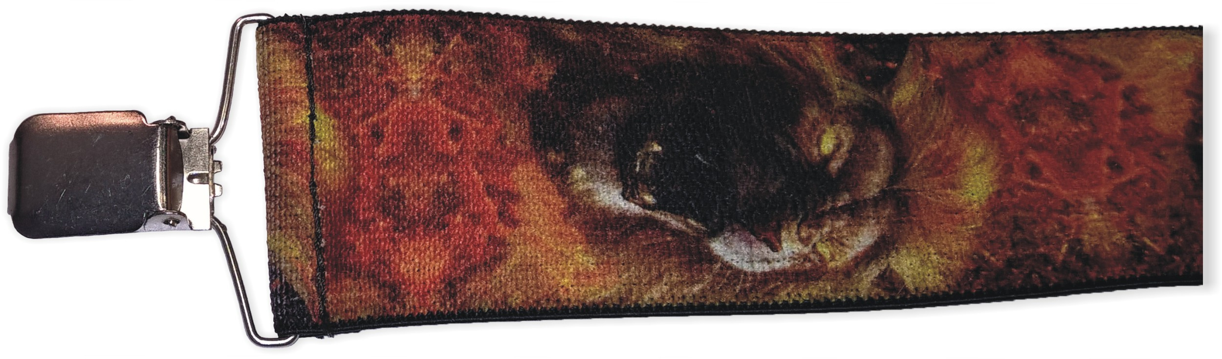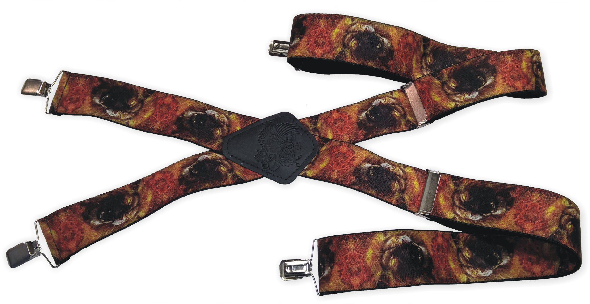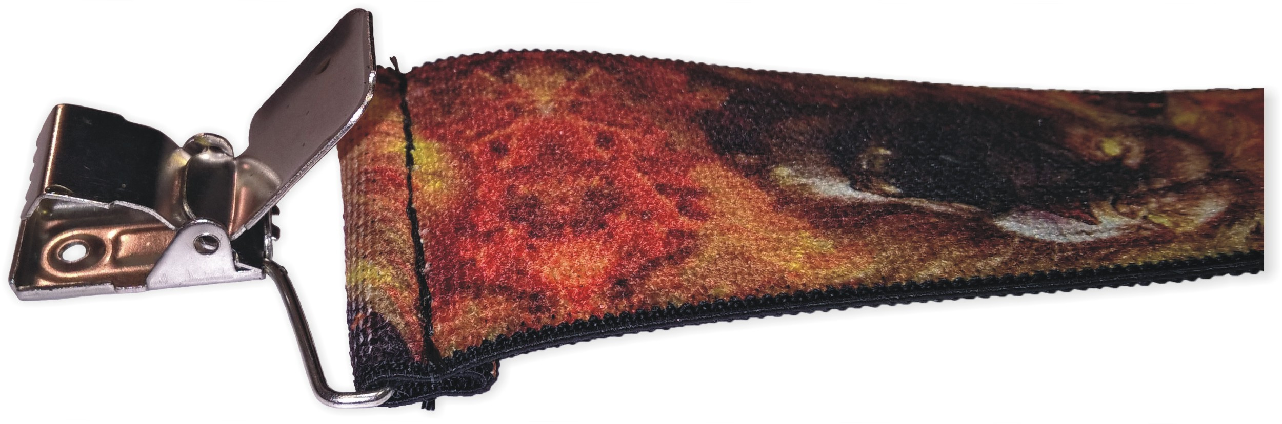 Pružné kšandy s potiskem. Libovolně nastavitelné. Připnutí ke kalhotám je tvořeno kovovými sponkami, které jsou ozubené a tudíž výborně drží a nepovolí.