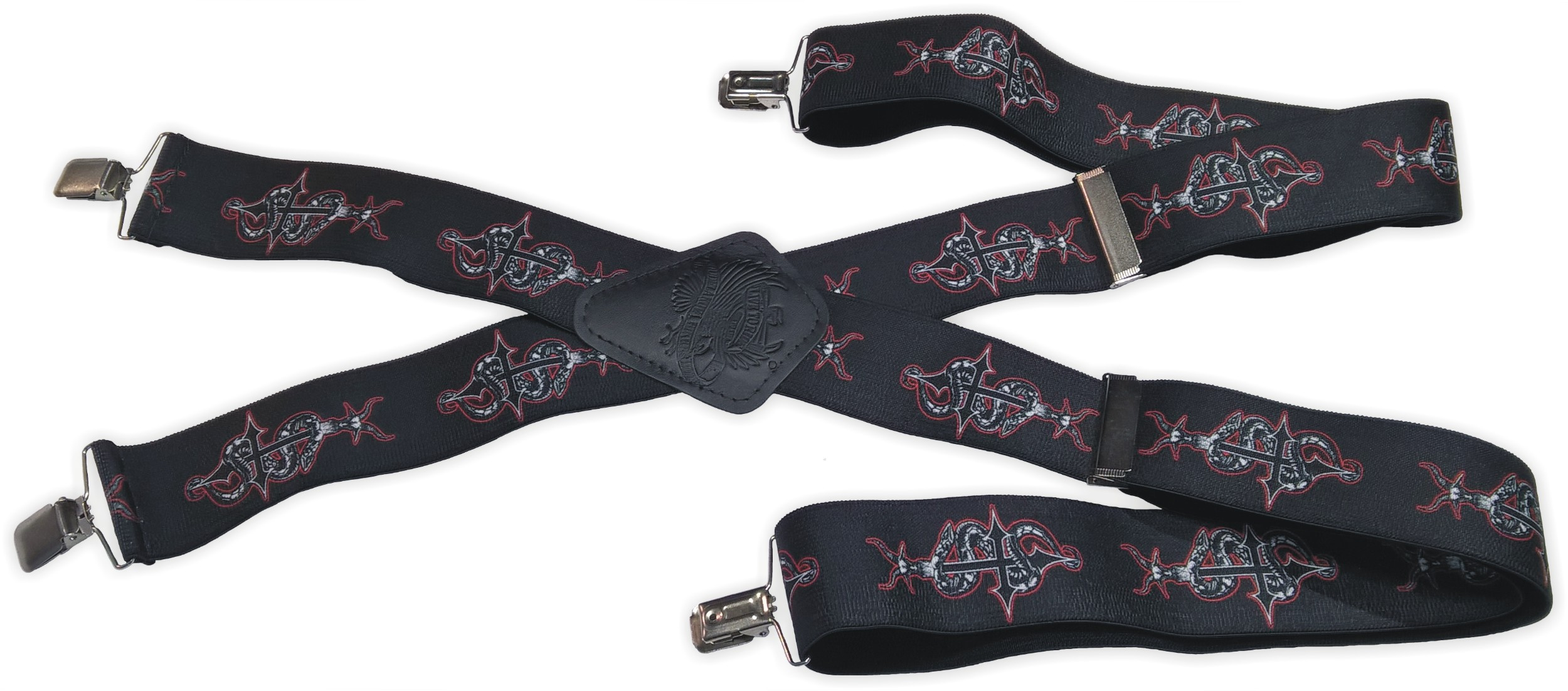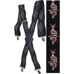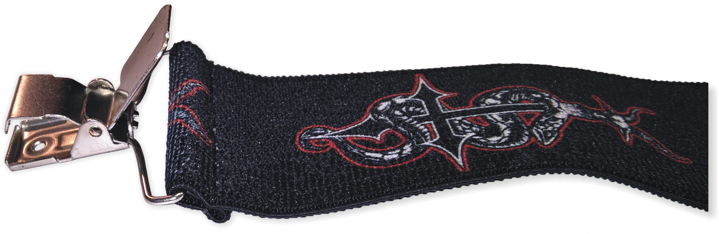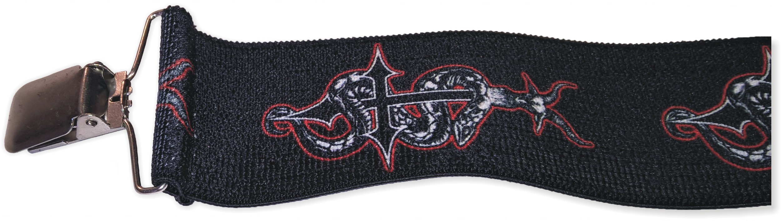 Pružné kšandy s potiskem. Libovolně nastavitelné. Připnutí ke kalhotám je tvořeno kovovými sponkami, které jsou ozubené a tudíž výborně drží a nepovolí.