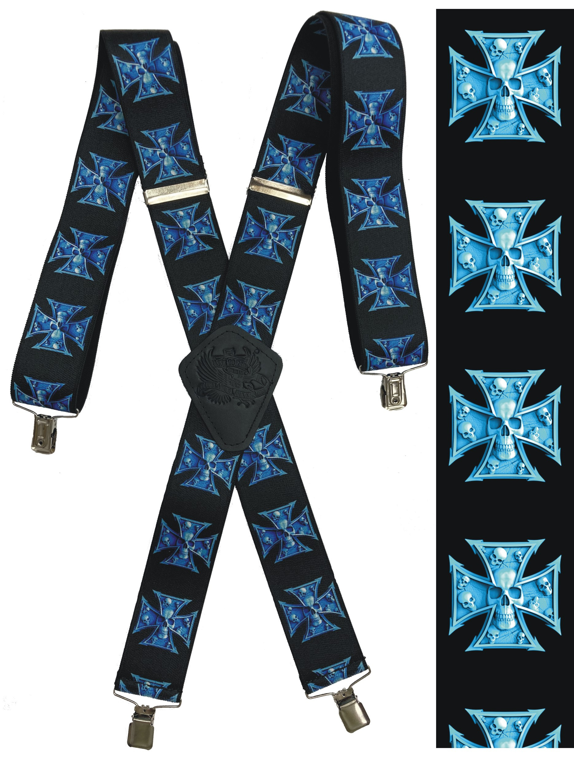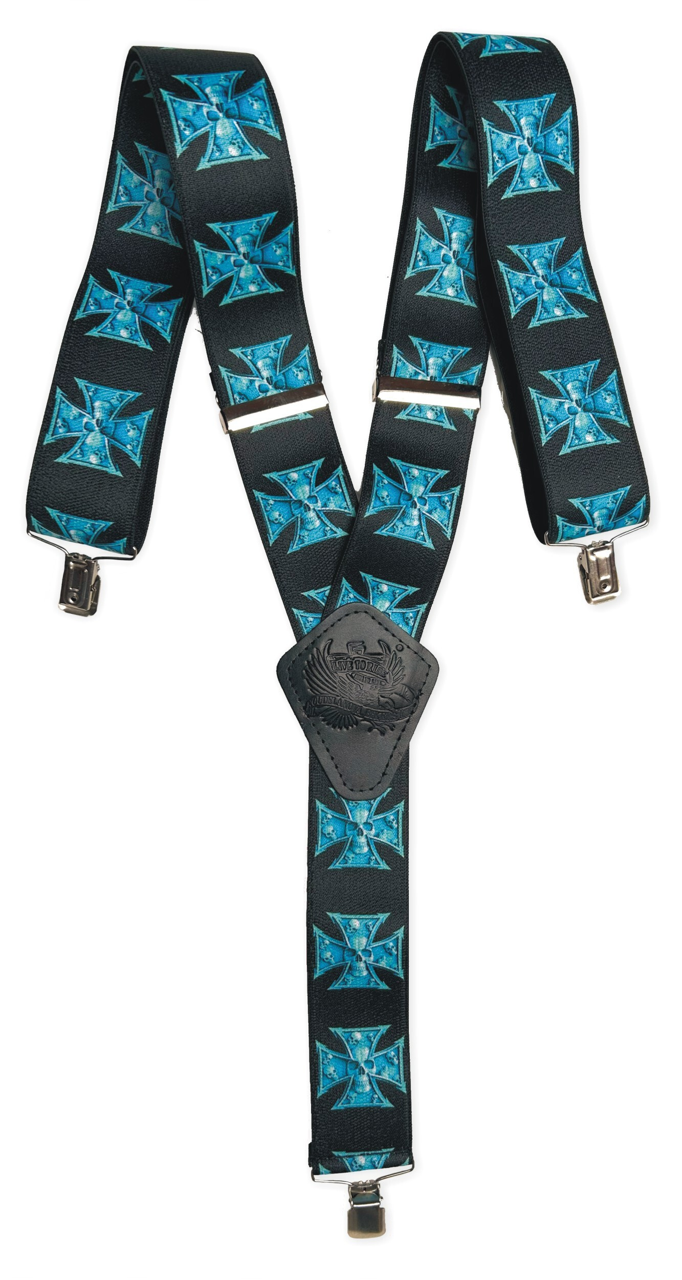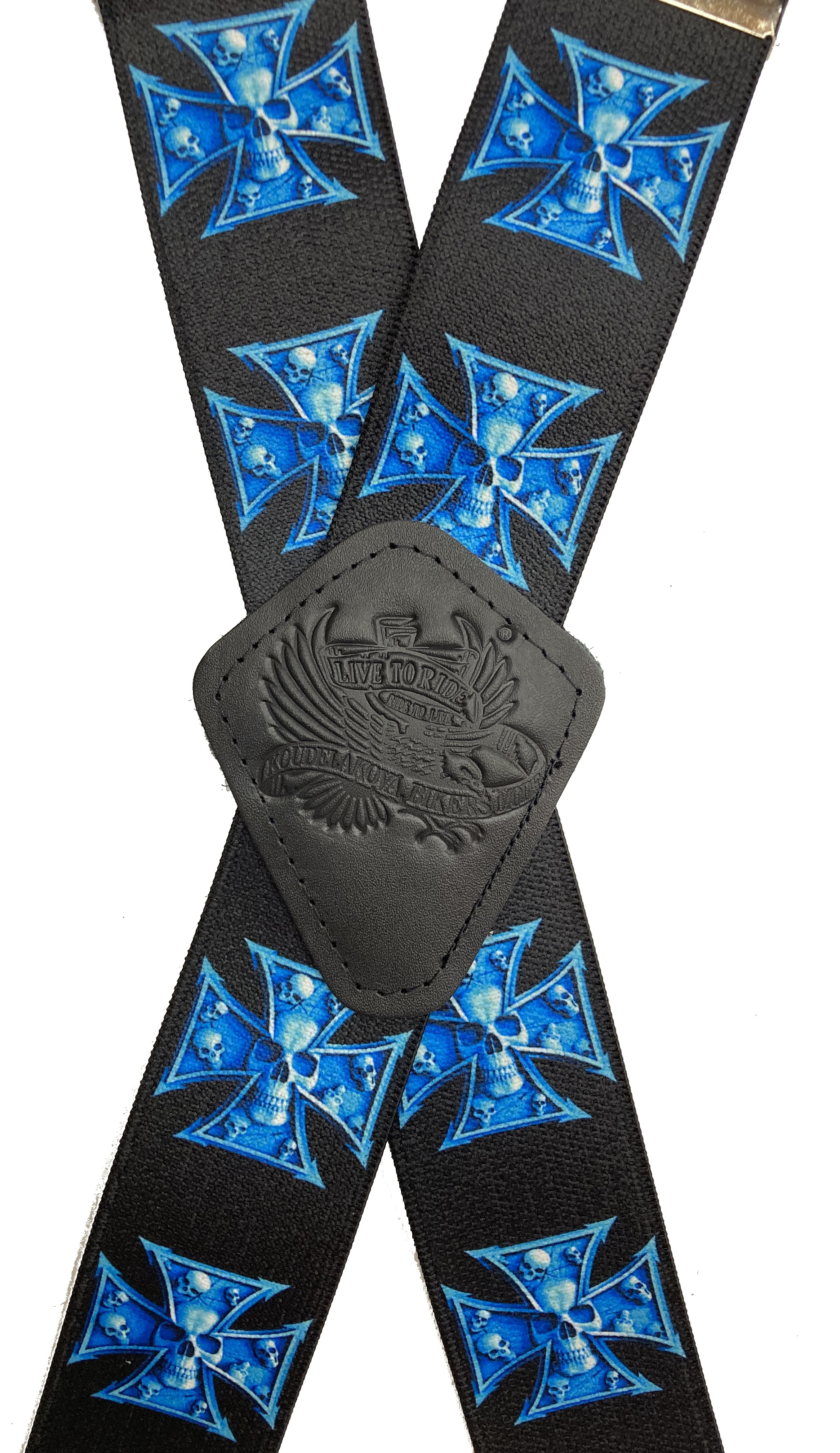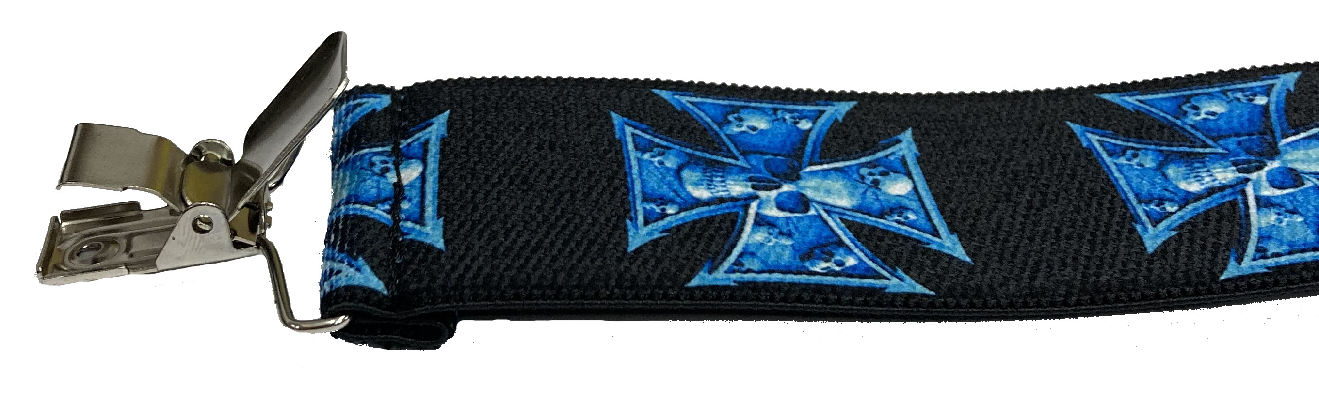 Pružné kšandy s potiskem. Libovolně nastavitelné. Připnutí ke kalhotám je tvořeno kovovými sponkami, které jsou ozubené a tudíž výborně drží a nepovolí.