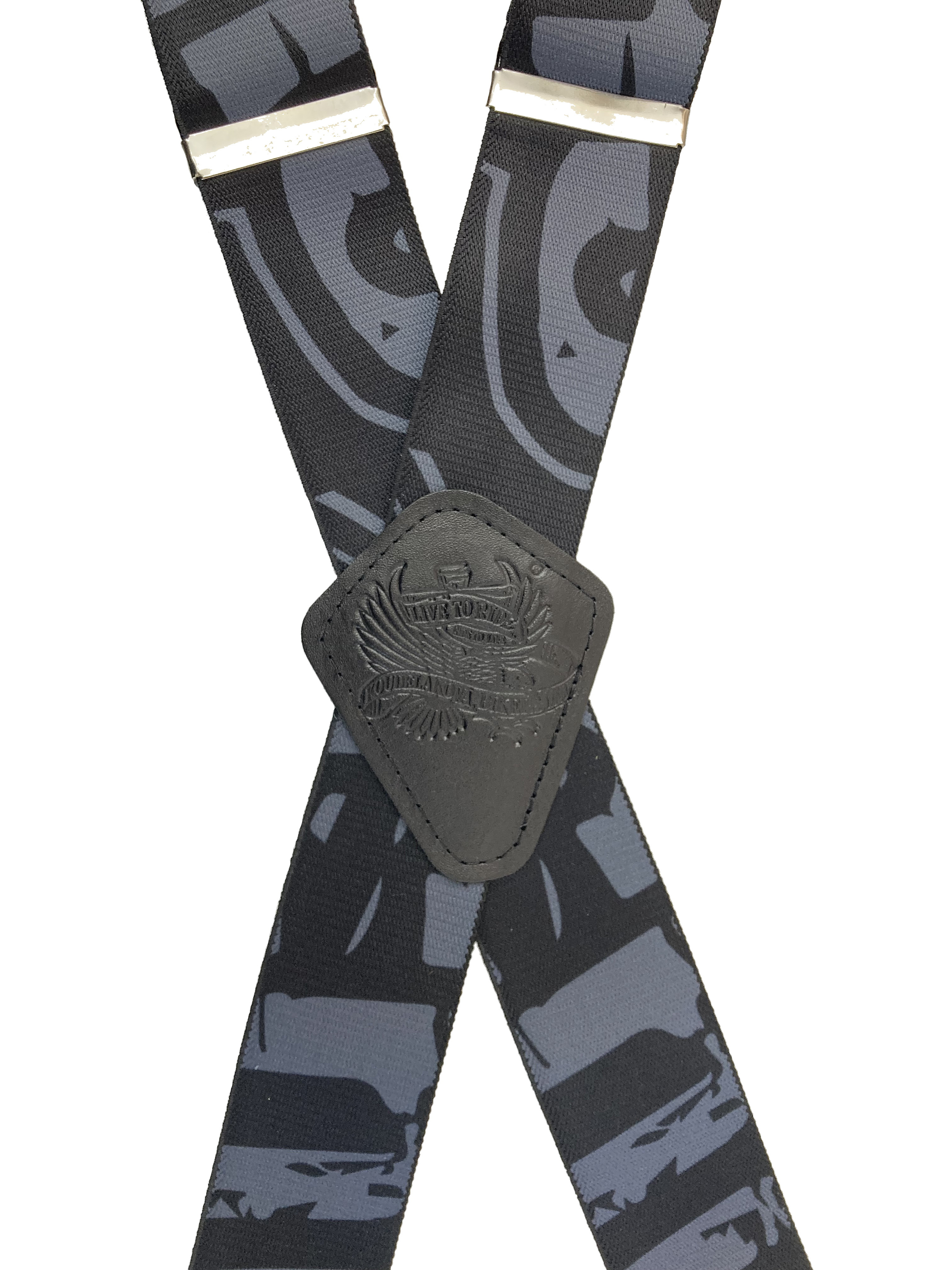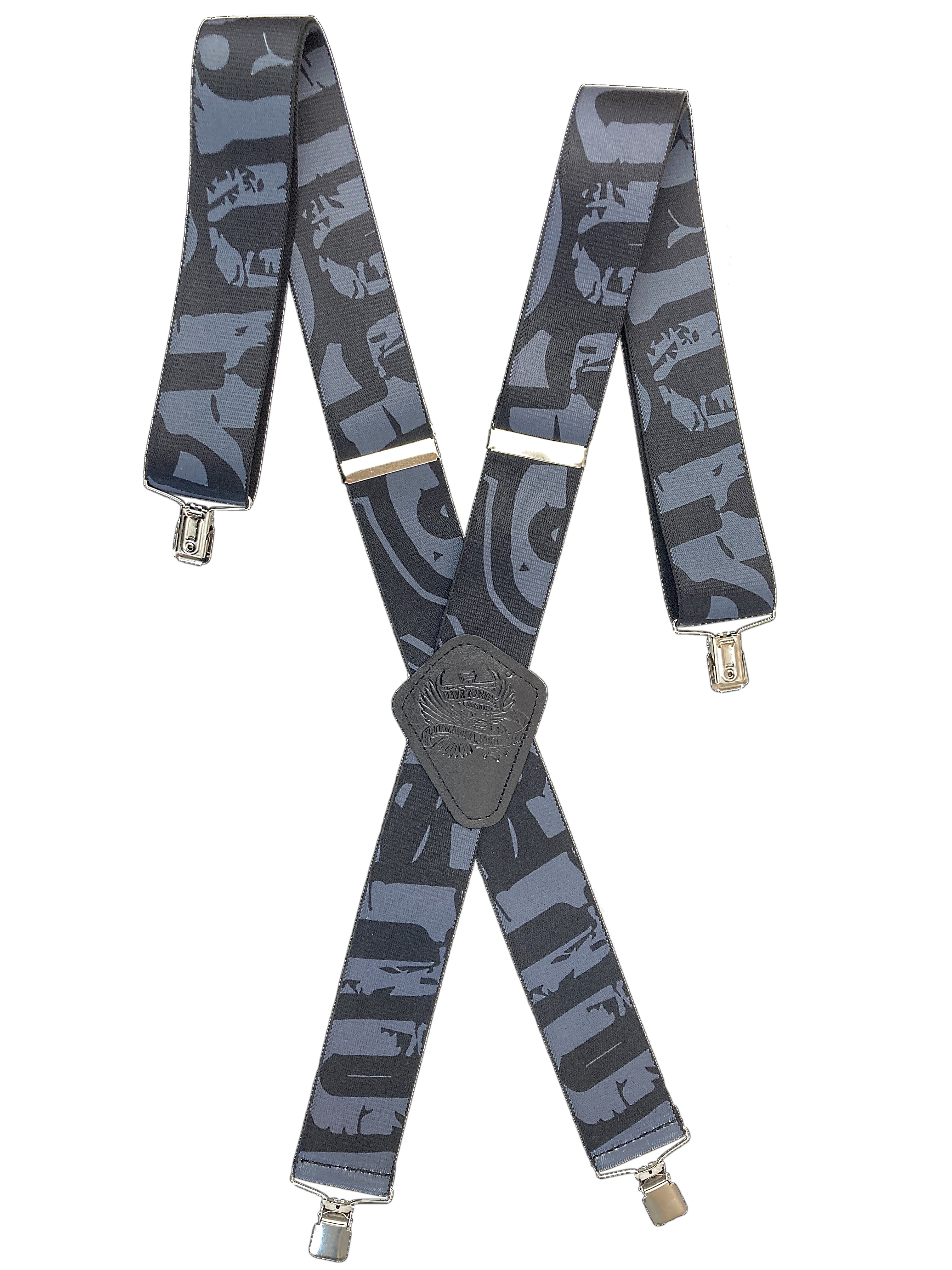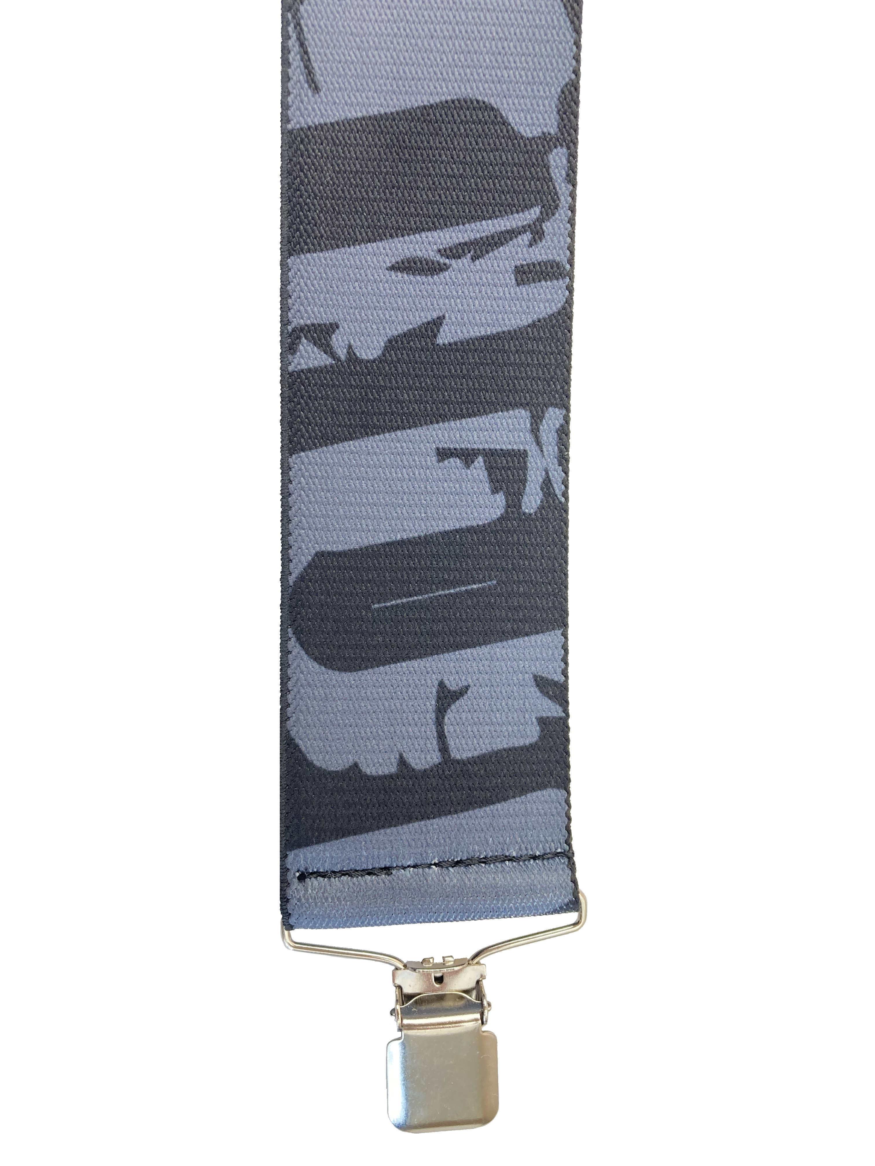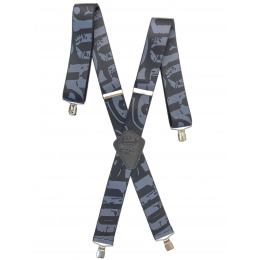 Pružné kšandy s potiskem. Libovolně nastavitelné. Připnutí ke kalhotám je tvořeno kovovými sponkami, které jsou ozubené a tudíž výborně drží a nepovolí.