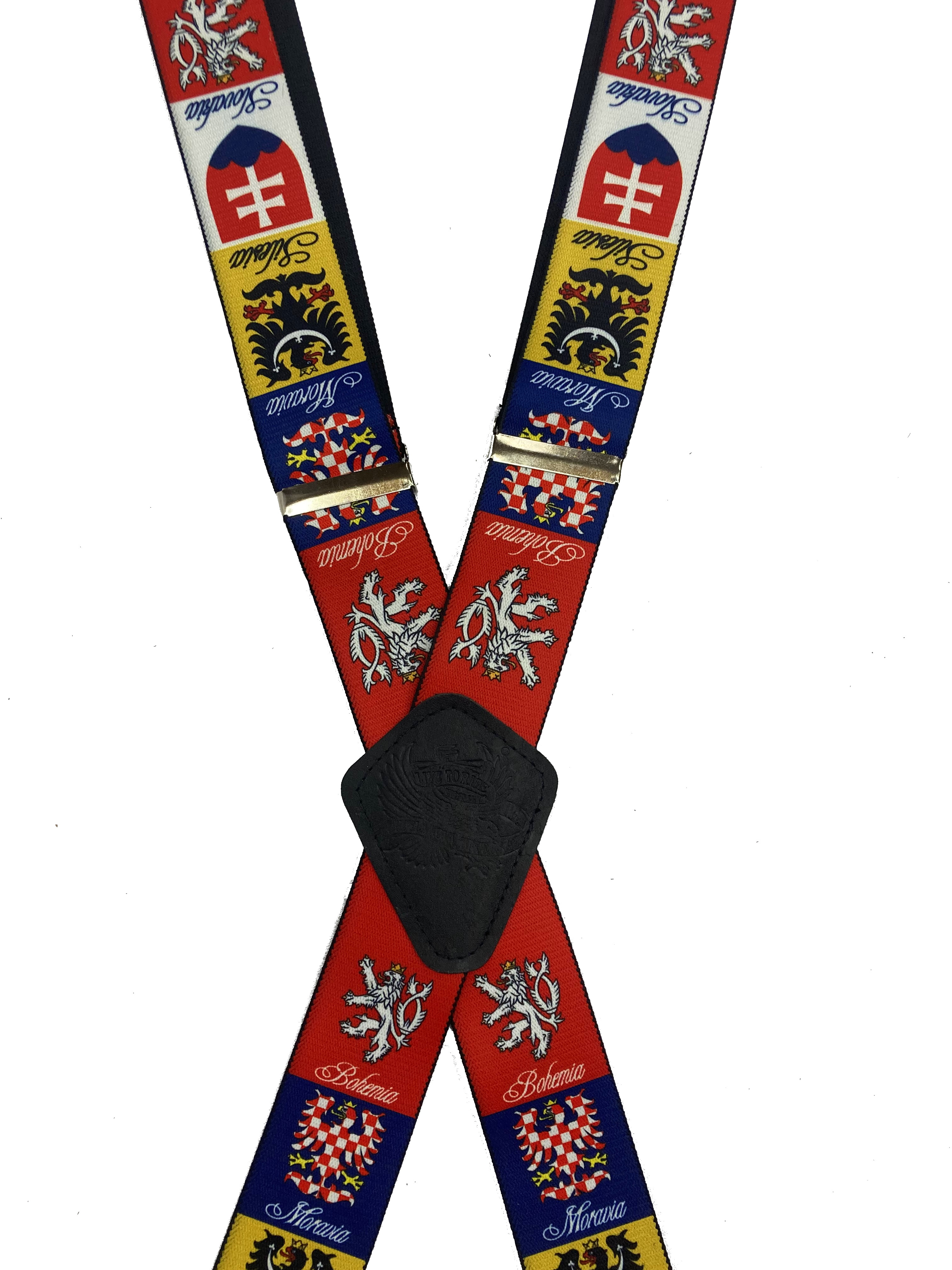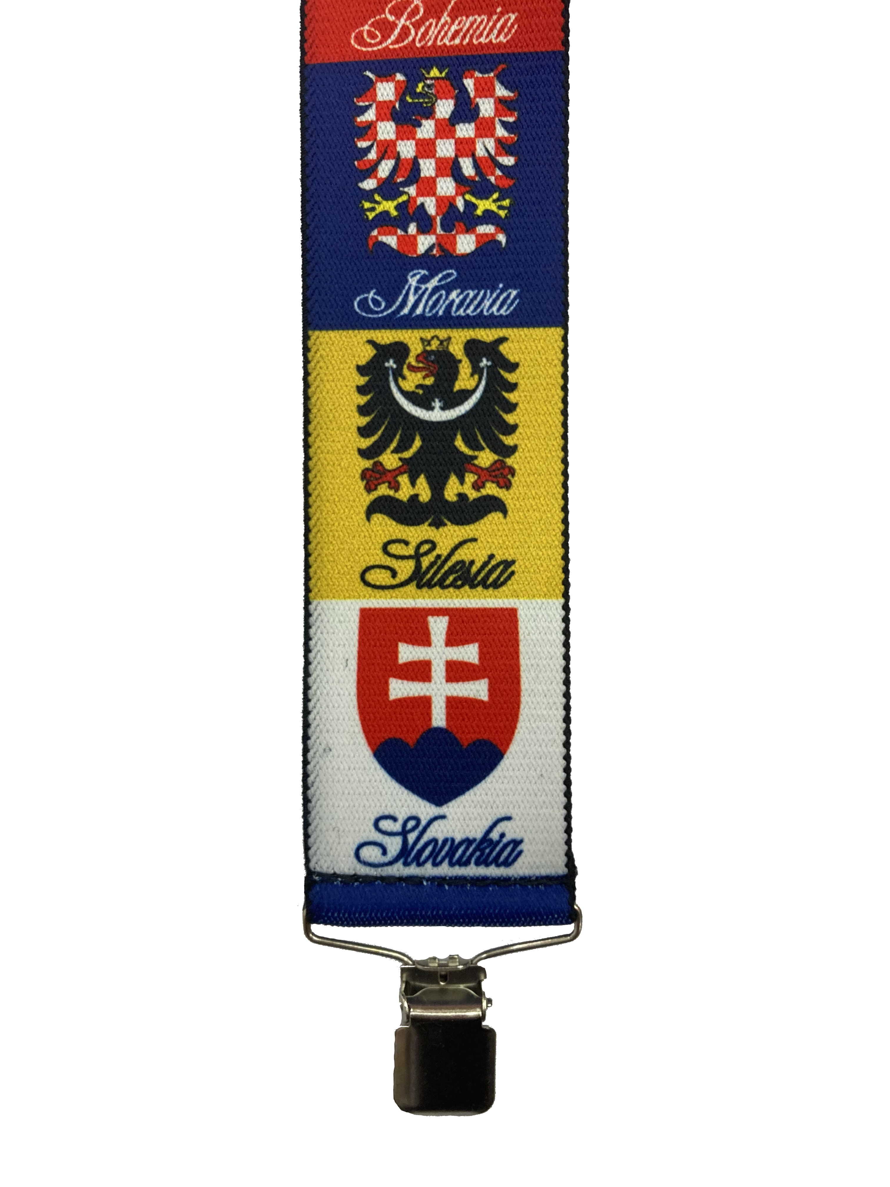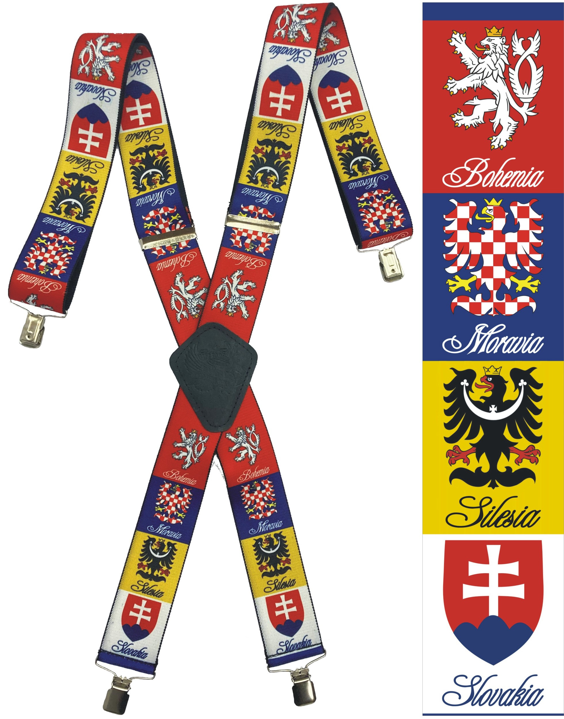 Kšandy s motivem znaků Zemí českých a znaku Slovenska jsou součástí naší nové řady šlí s motivy historických zemí seskupených v současné České republice plus motivy Slovenska, které lze zakoupit samostatně nebo v sadě.