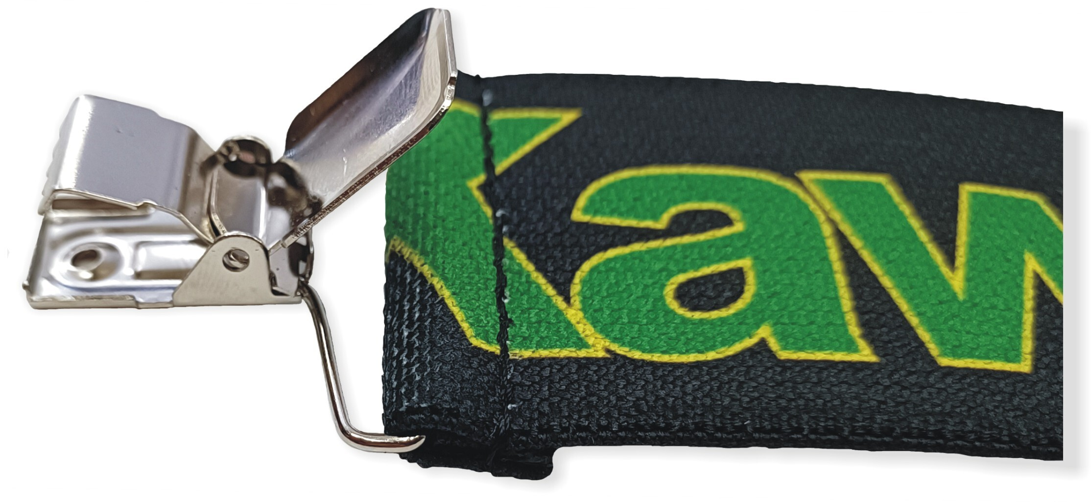 Pružné kšandy s motivem Vaší oblíbené značky motocyklu jsou součástí naší řady šlí s motivy a logy výrobců motocyklů. Libovolně nastavitelné. Připnutí ke kalhotám je tvořeno kovovými sponkami, které jsou ozubené a tudíž výborně drží a nepovolí.