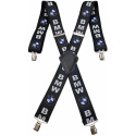 Pružné kšandy s motivem Vaší oblíbené značky motocyklu jsou součástí naší řady šlí s motivy a logy výrobců motocyklů. Libovolně nastavitelné. Připnutí ke kalhotám je tvořeno kovovými sponkami, které jsou ozubené a tudíž výborně drží a nepovolí.