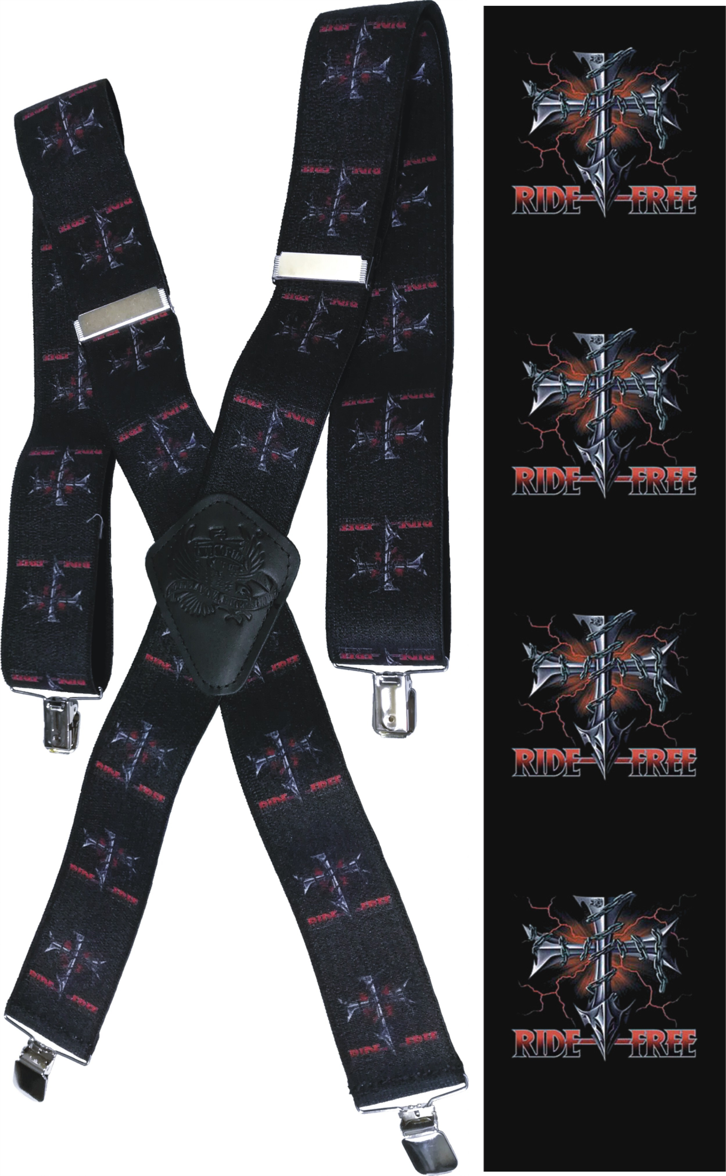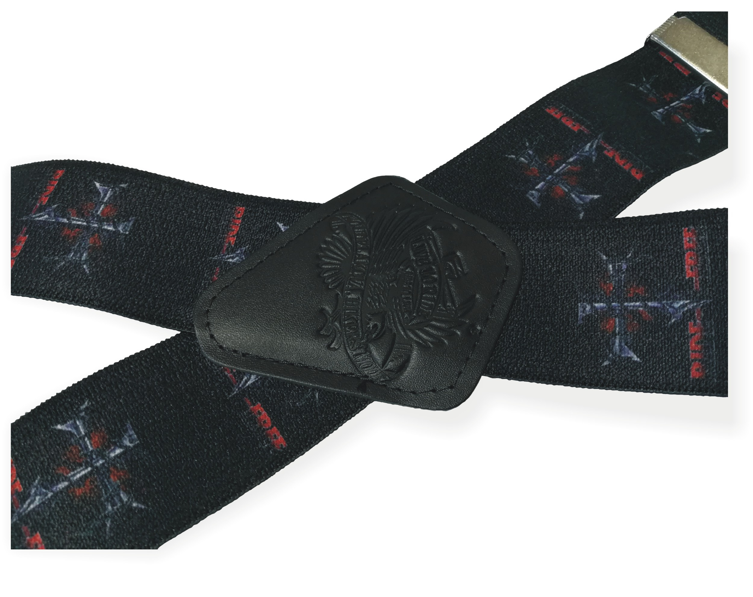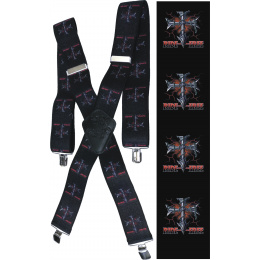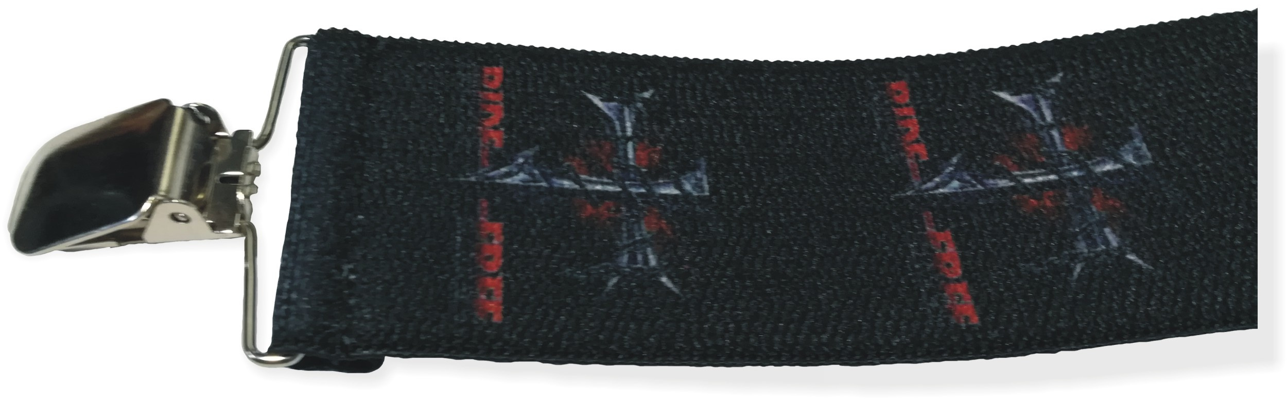 Pružné kšandy s potiskem. Libovolně nastavitelné. Připnutí ke kalhotám je tvořeno kovovými sponkami, které jsou ozubené a tudíž výborně drží a nepovolí.