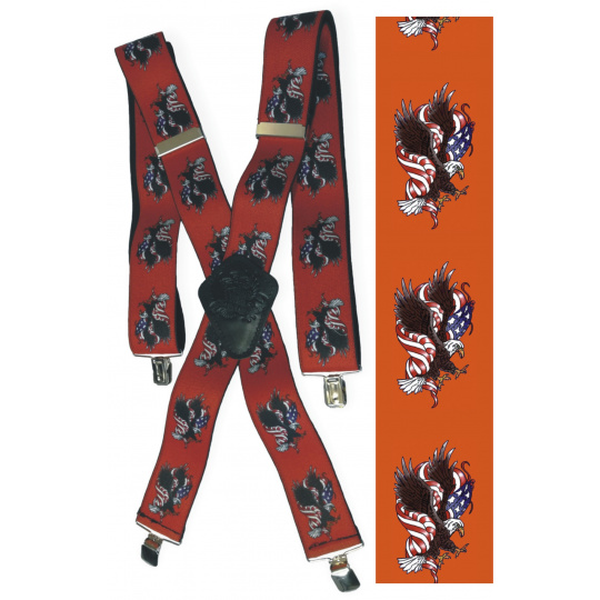 Pružné kšandy s potiskem. Libovolně nastavitelné. Připnutí ke kalhotám je tvořeno kovovými sponkami, které jsou ozubené a tudíž výborně drží a nepovolí.