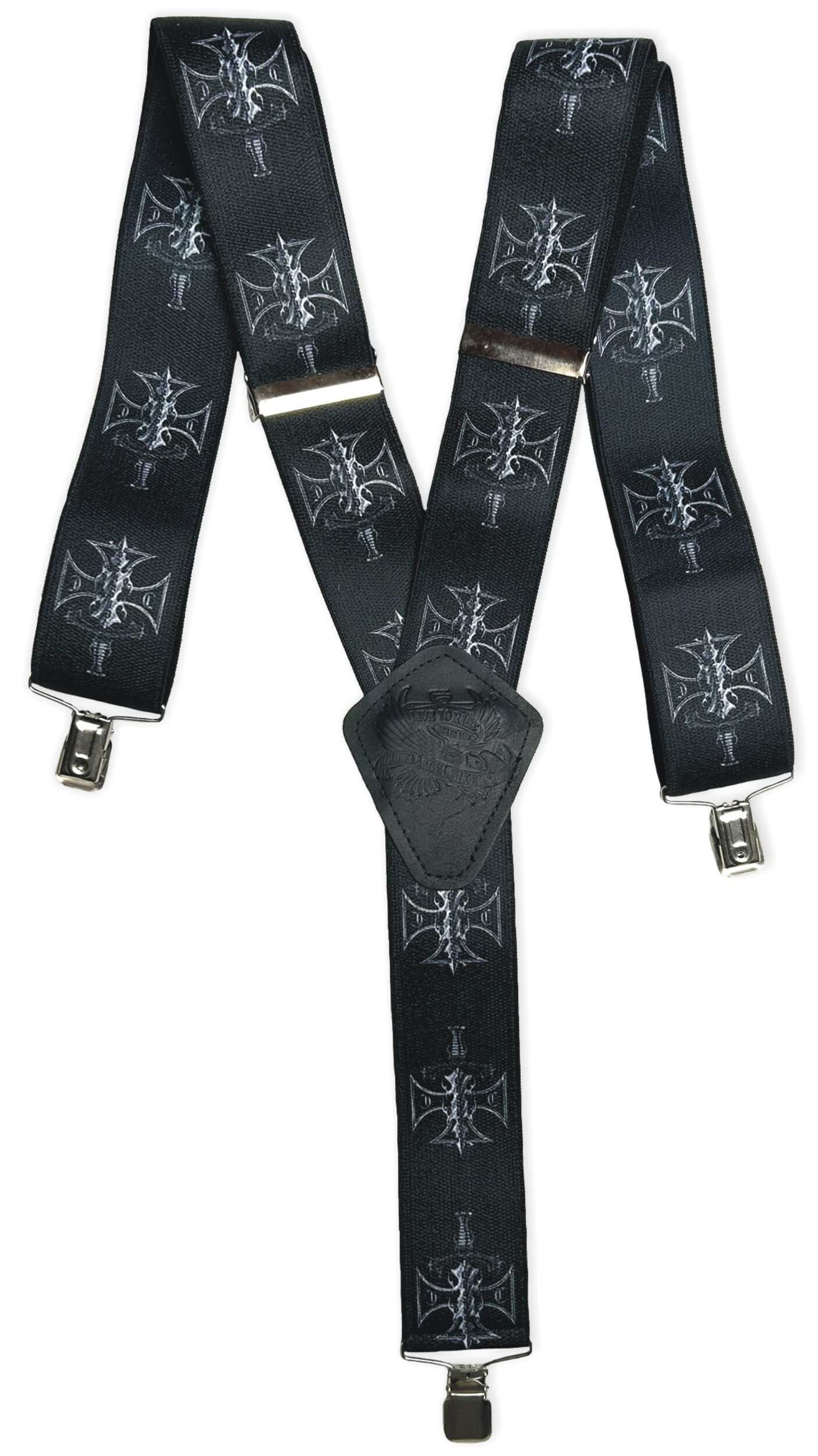 Pružné kšandy s potiskem. Libovolně nastavitelné. Připnutí ke kalhotám je tvořeno kovovými sponkami, které jsou ozubené a tudíž výborně drží a nepovolí.