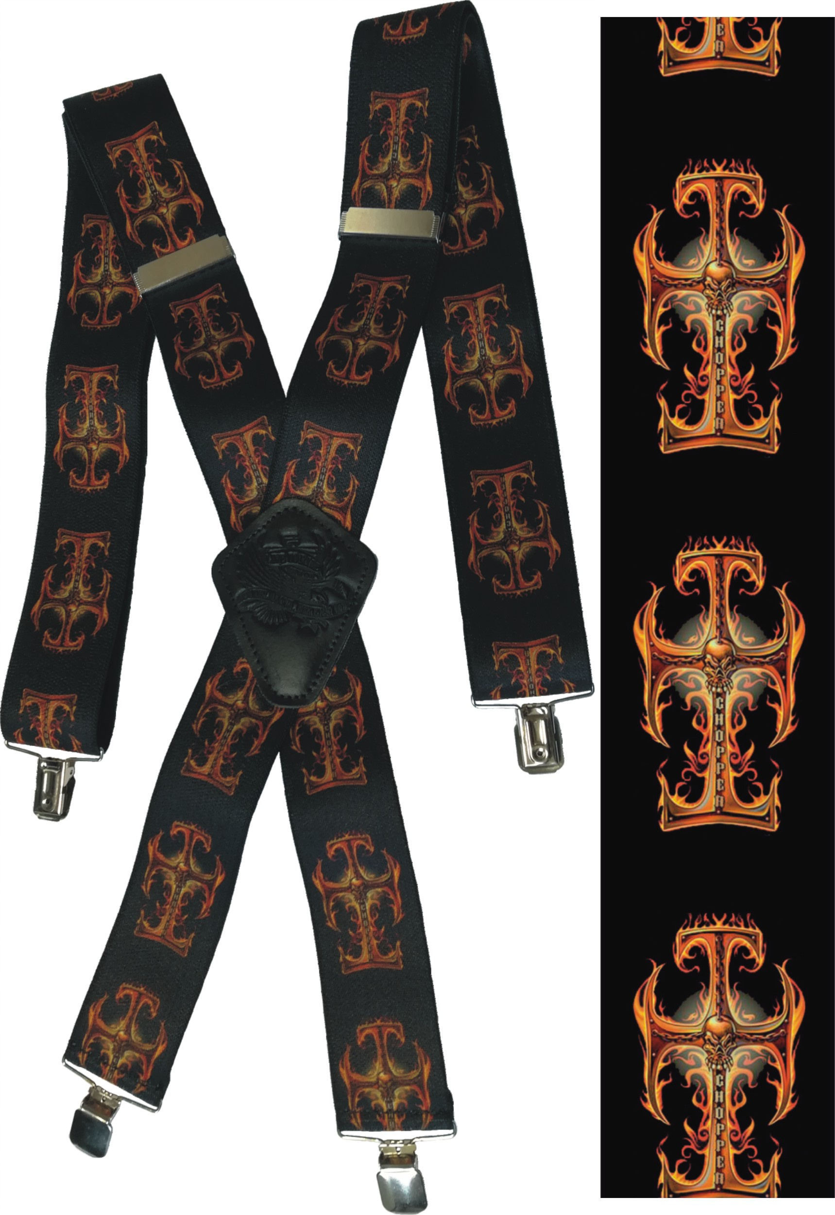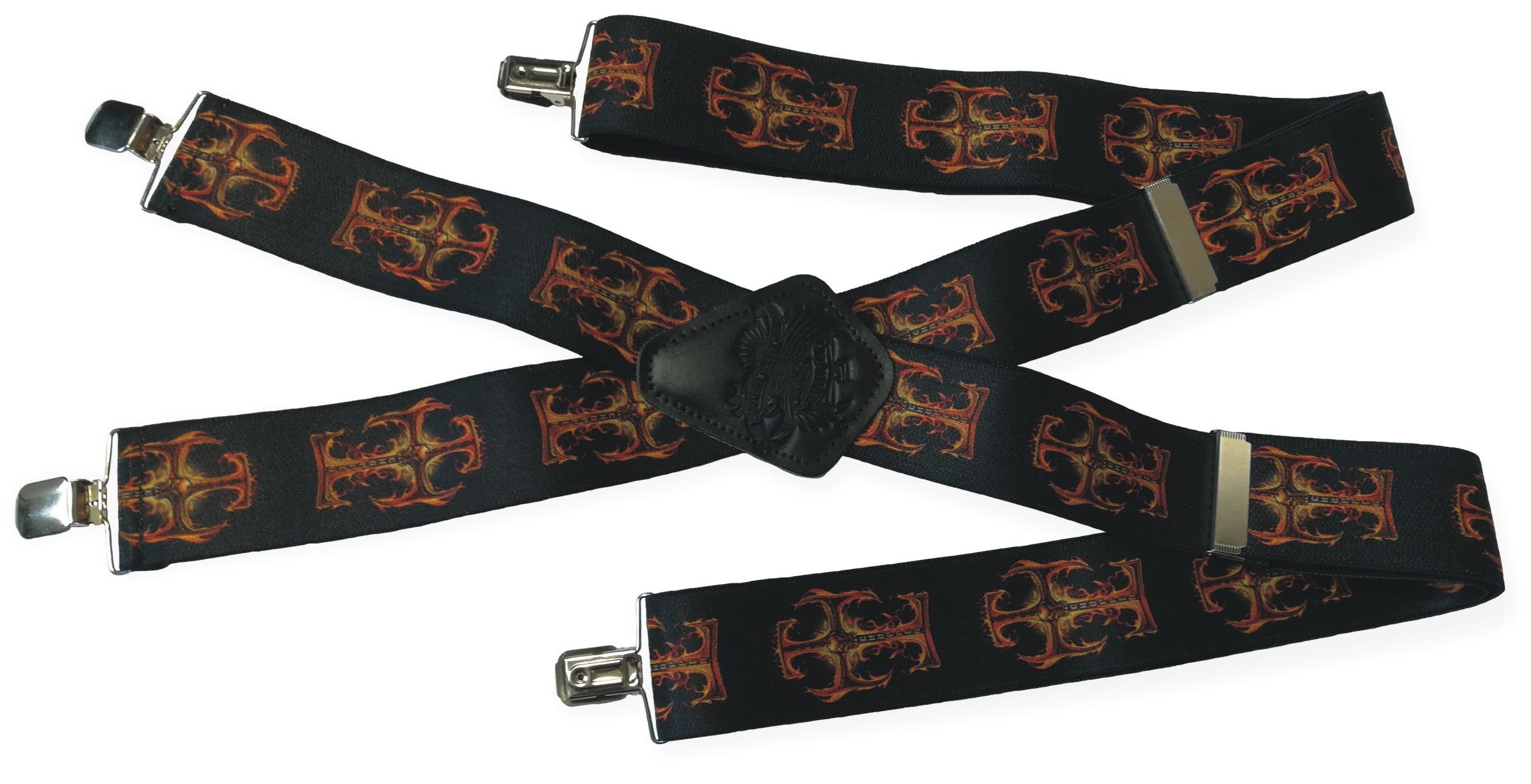 Pružné kšandy s potiskem. Libovolně nastavitelné. Připnutí ke kalhotám je tvořeno kovovými sponkami, které jsou ozubené a tudíž výborně drží a nepovolí.