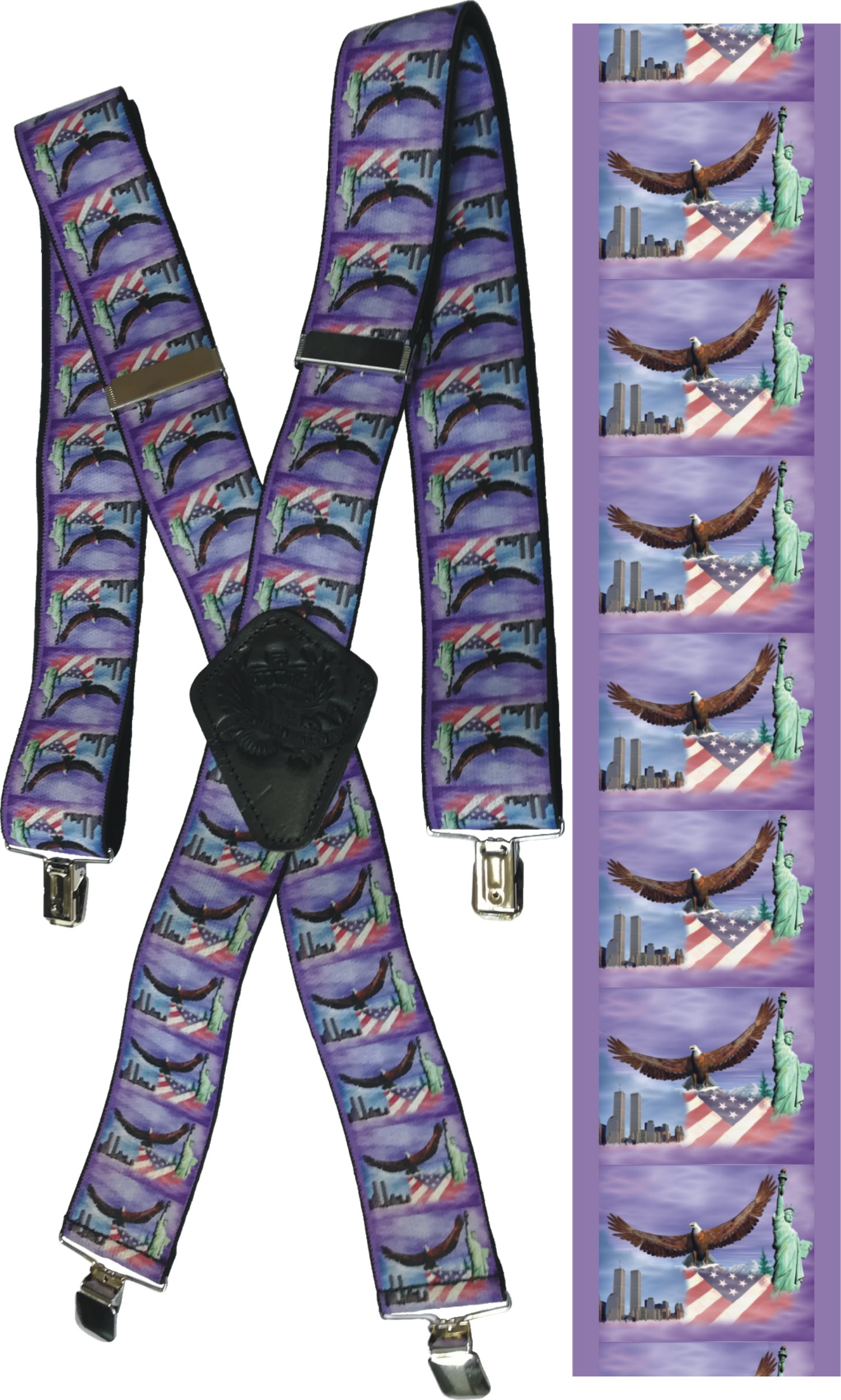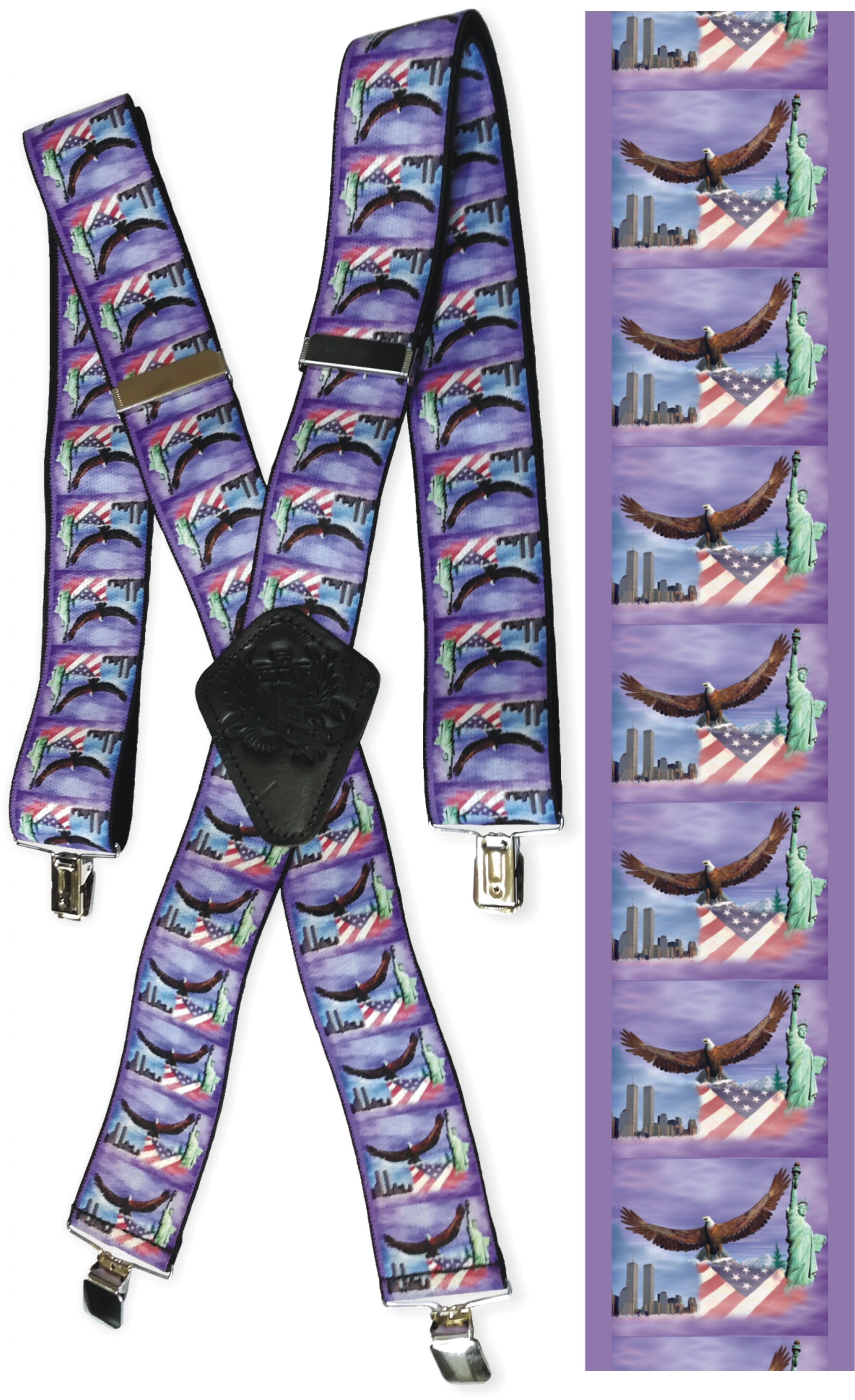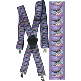Pružné kšandy s potiskem. Libovolně nastavitelné. Připnutí ke kalhotám je tvořeno kovovými sponkami, které jsou ozubené a tudíž výborně drží a nepovolí.