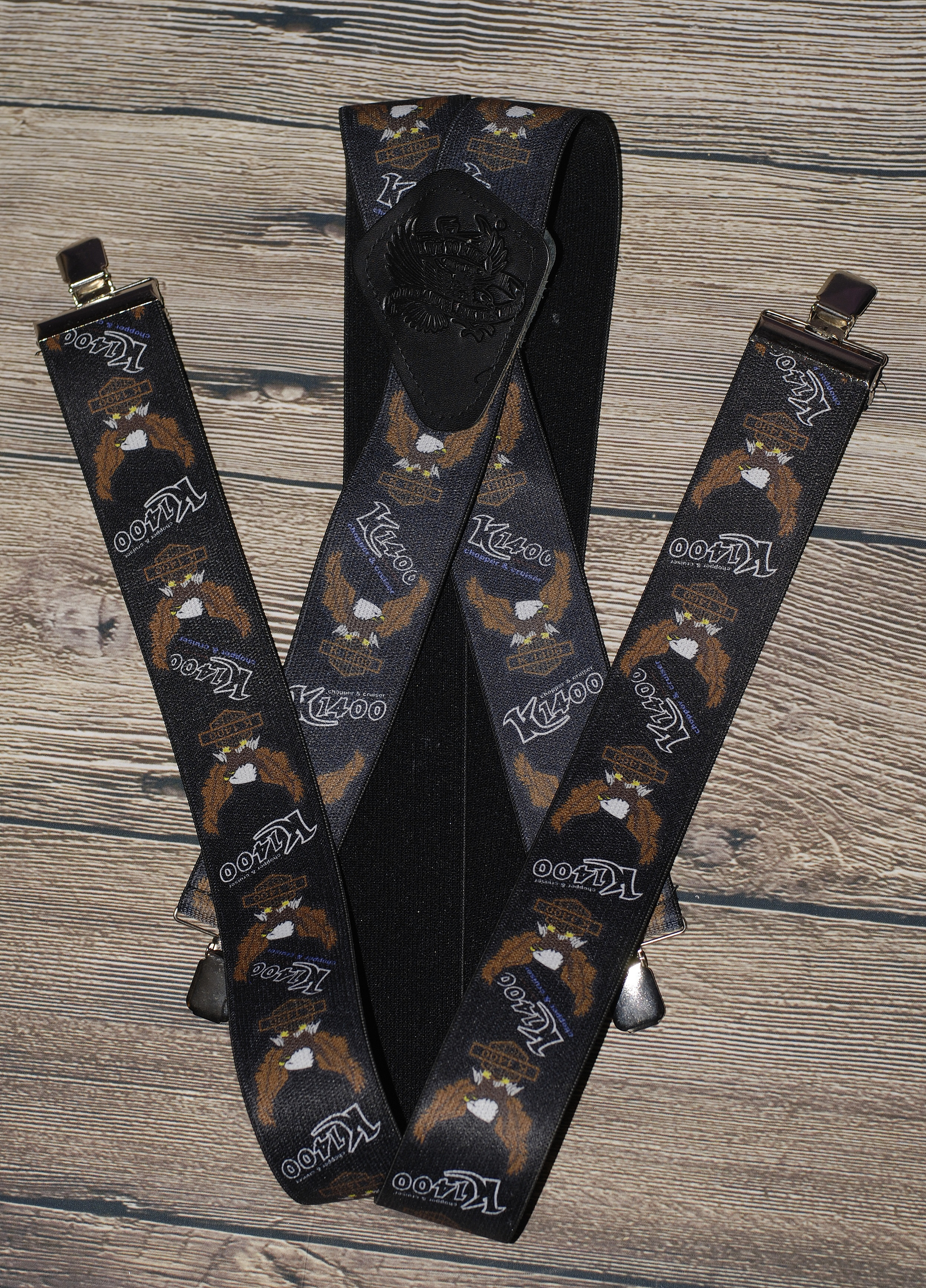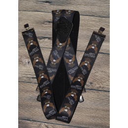 Pružné kšandy s potiskem. Libovolně nastavitelné. Připnutí ke kalhotám je tvořeno kovovými sponkami, které jsou ozubené a tudíž výborně drží a nepovolí.