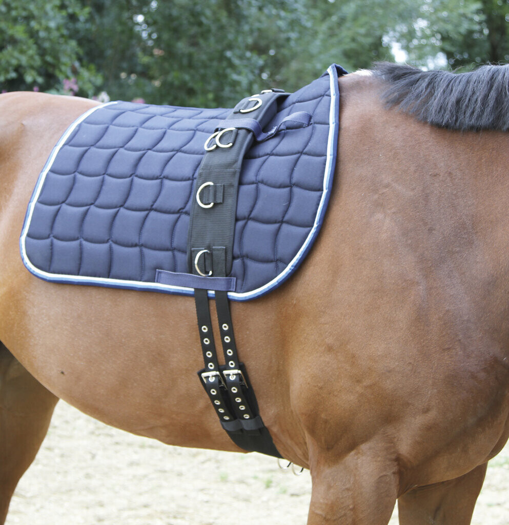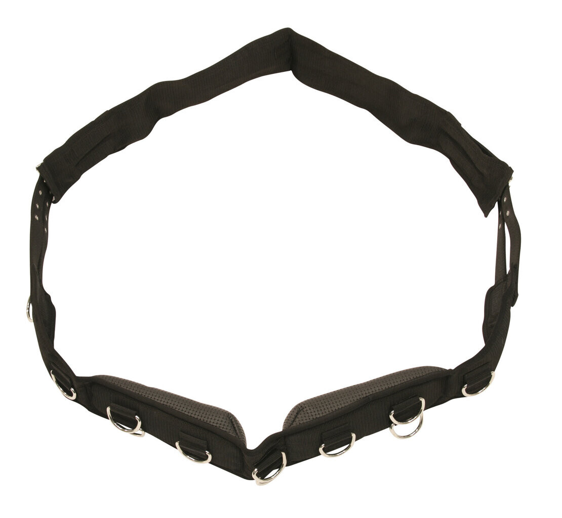 Univerzální textilní lonžovací obřišník pro lonžování a výcvik s 9 kroužky.