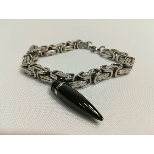 Popis produktu masivní kovový náramek kulkaStylový masivní kovový náramek. Materiál: nerezová ocel Velikost: obvod cca 20 cm Stav: málo nošený, bez známek použití