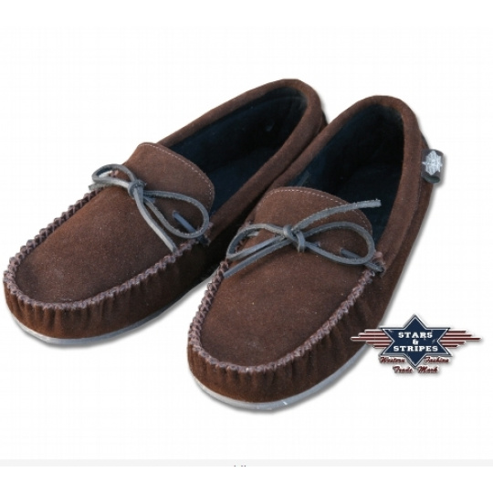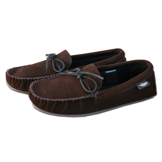 Klasické mokasíny vyrobené z kvalitní broušené kůže. Pevná podrážka, možno používat venku i vevnitř.