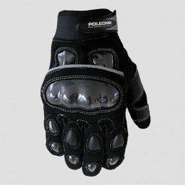 Popis produktu moto rukavice Polednik CARBONJemné textilní silniční rukavice. Hřbet: jemná elastická tkanina popcorn, neoprenová manžeta kolem zápěstí, protektory kloubů a prstů, reflexní bezpečnostní prvky Dlaň: syntetická kůže Barvy: černá Velikosti: XXL, XL, L, M, S