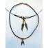 Popis produktu náhrdelník 2 pírkaKovový přívěsek na černé šňůrce imitující kůži. Zapínání karabinkou. Materiál: kov, textil Barva: šňůrka černá, kov nikl patina Délka náhrdelníku: cca 48 cm