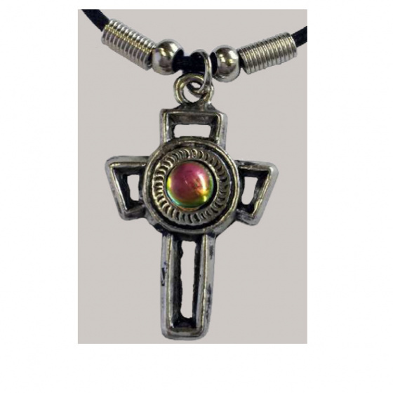 Popis produktu náhrdelník KřížKovový přívěsek na černé šňůrce imitující kůži. Zapínání karabinkou. Materiál: kov, textil Barva: šňůrka černá, kov nikl patina Délka náhrdelníku: cca 48 cm