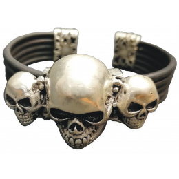 Stylový masivní kovový náramek s emblémem 3 lebek.