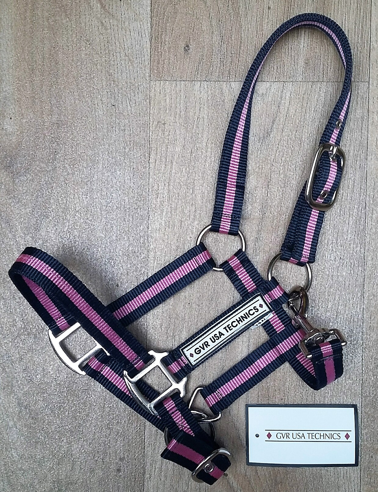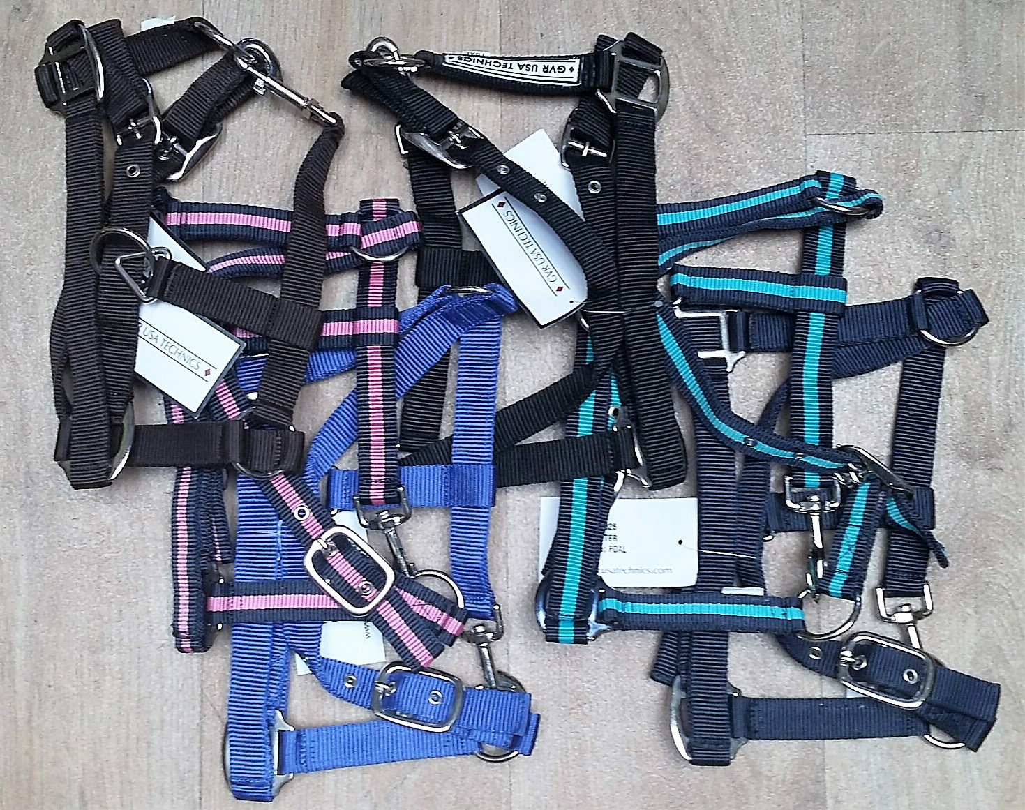 Silná nylonová ohlávka v různých velikostech a barevných provedeních nastavitelná na temeni a nose.