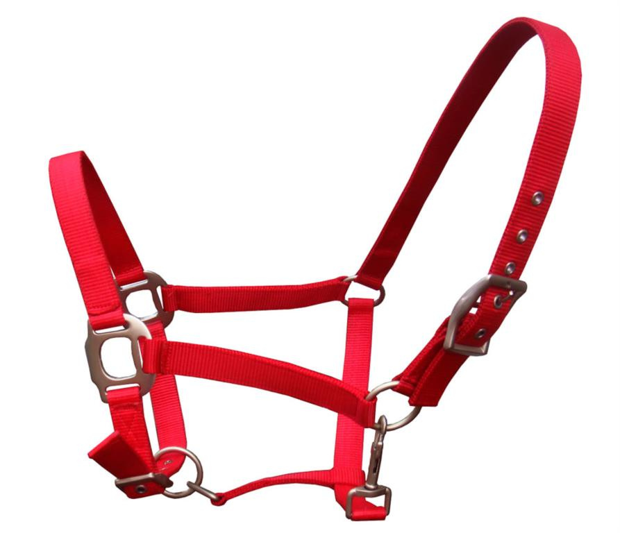 Kvalitní westernová nylonová ohlávka s matným kováním nastavitelná na nose a boku.