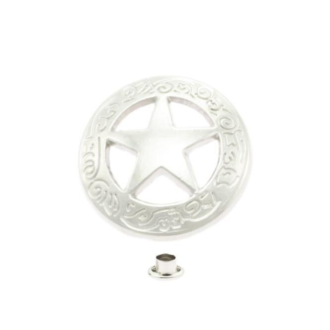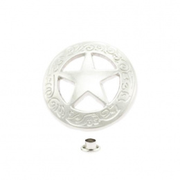 Nýtovací ozdoba ve vzhledu šerifské hvězdy je vhodná ke zdobení nejen kožených výrobků. Dodáváno jako komplet - ozdoba plus čepička k zanýtování ze zadní strany.