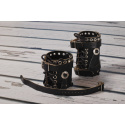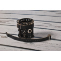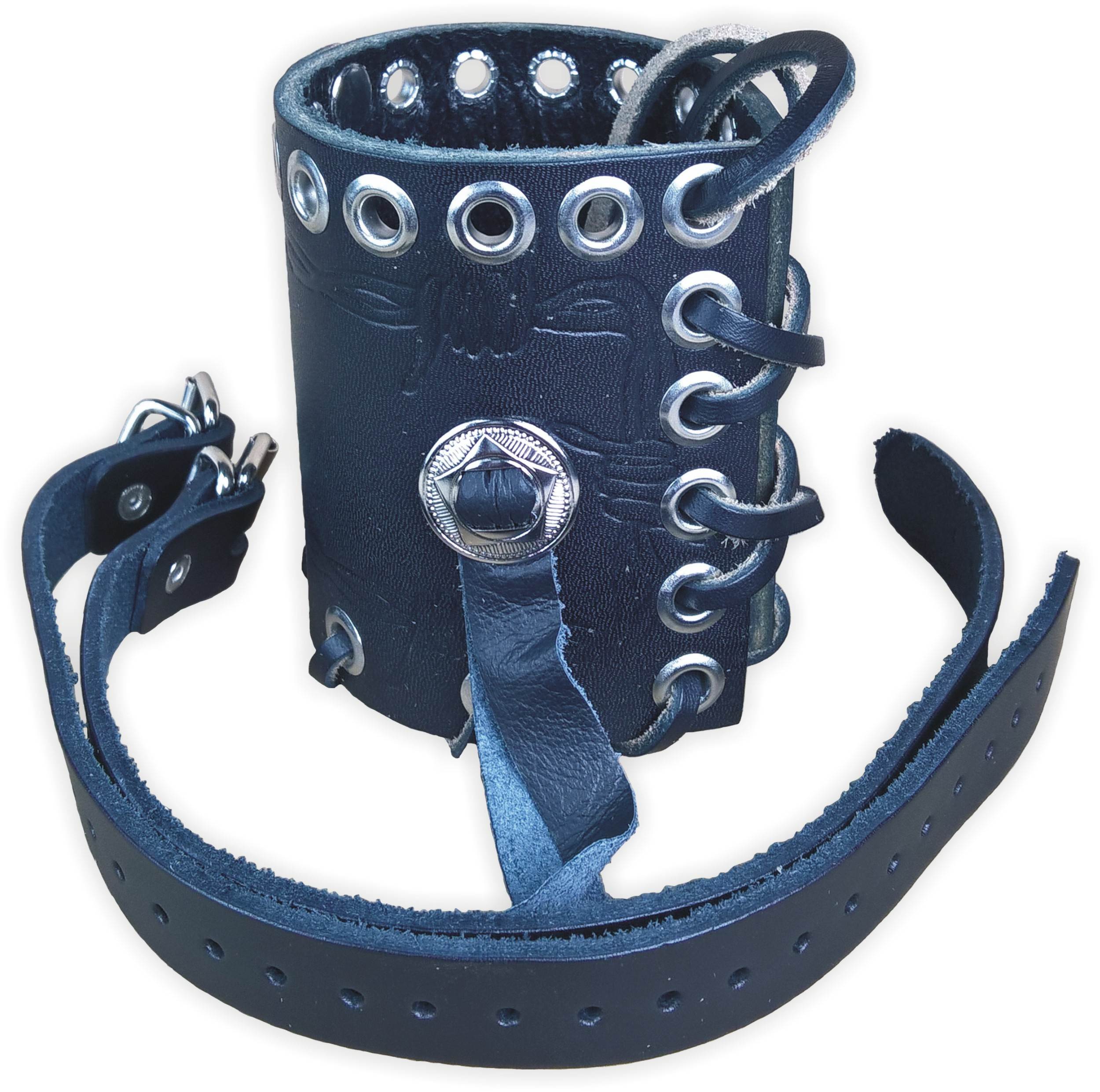 Držák, obal na plechovku, láhev (vhodný na plechovky, láhve 0,3 a 0,5 L) ap. Možno upevnit na řídítka, padací rám, opěrku, přední vidlici ad. pomocí dvou řemínků. Kvalitní kůže a špičkové zpracování.