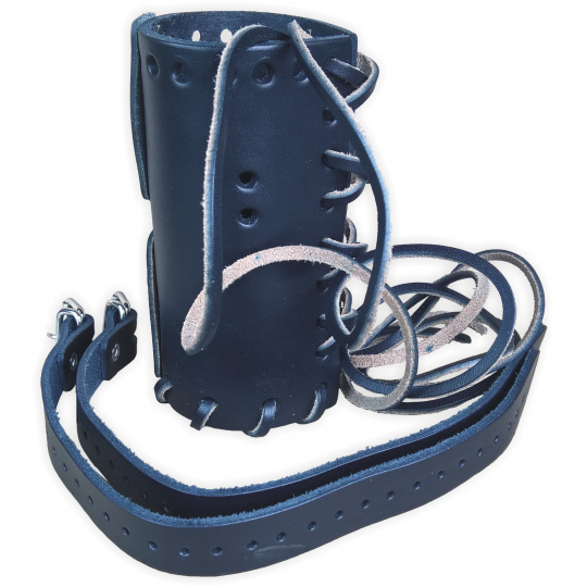 Držák, obal na dohušťovací sprej, plechovku, láhev (vhodný pro vyšší plechovky, 0,3 a 0,5 L láhve) ap. Možno upevnit na řídítka, padací rám, opěrku, přední vidlici ad. pomocí dvou řemínků. Kvalitní kůže a špičkové zpracování.