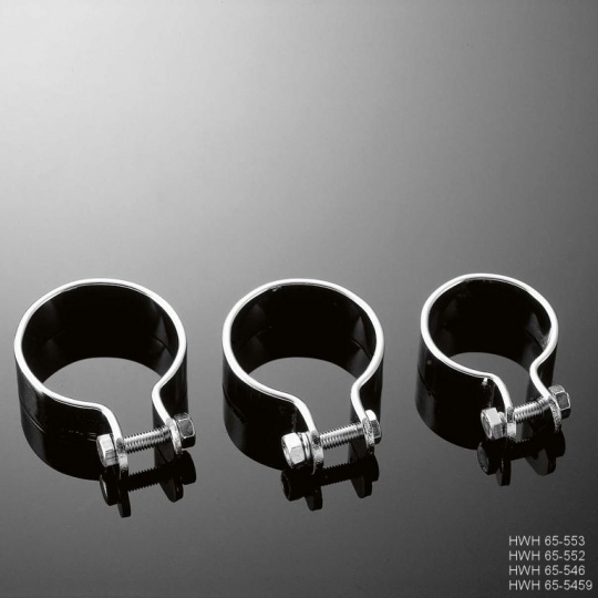 Objímka výfuku, universální, rozměry: průměr 38 nebo 45 nebo 48 nebo 54 mm, materiál: ocel, povrchová úprava: chrom, balení: 1ks.