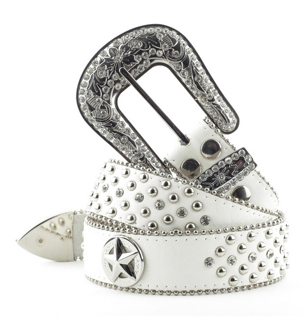 Sexy westernový opasek zdobený lesklými kamínky a nýty, s vyměnitelnou přezkou.