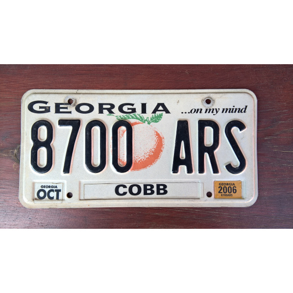 Popis produktu originál použitá SPZ Georgia USA Originální kovová použitá SPZ z amerických aut. Rozměr cca 306 x 152 mm. Stav dle foto.