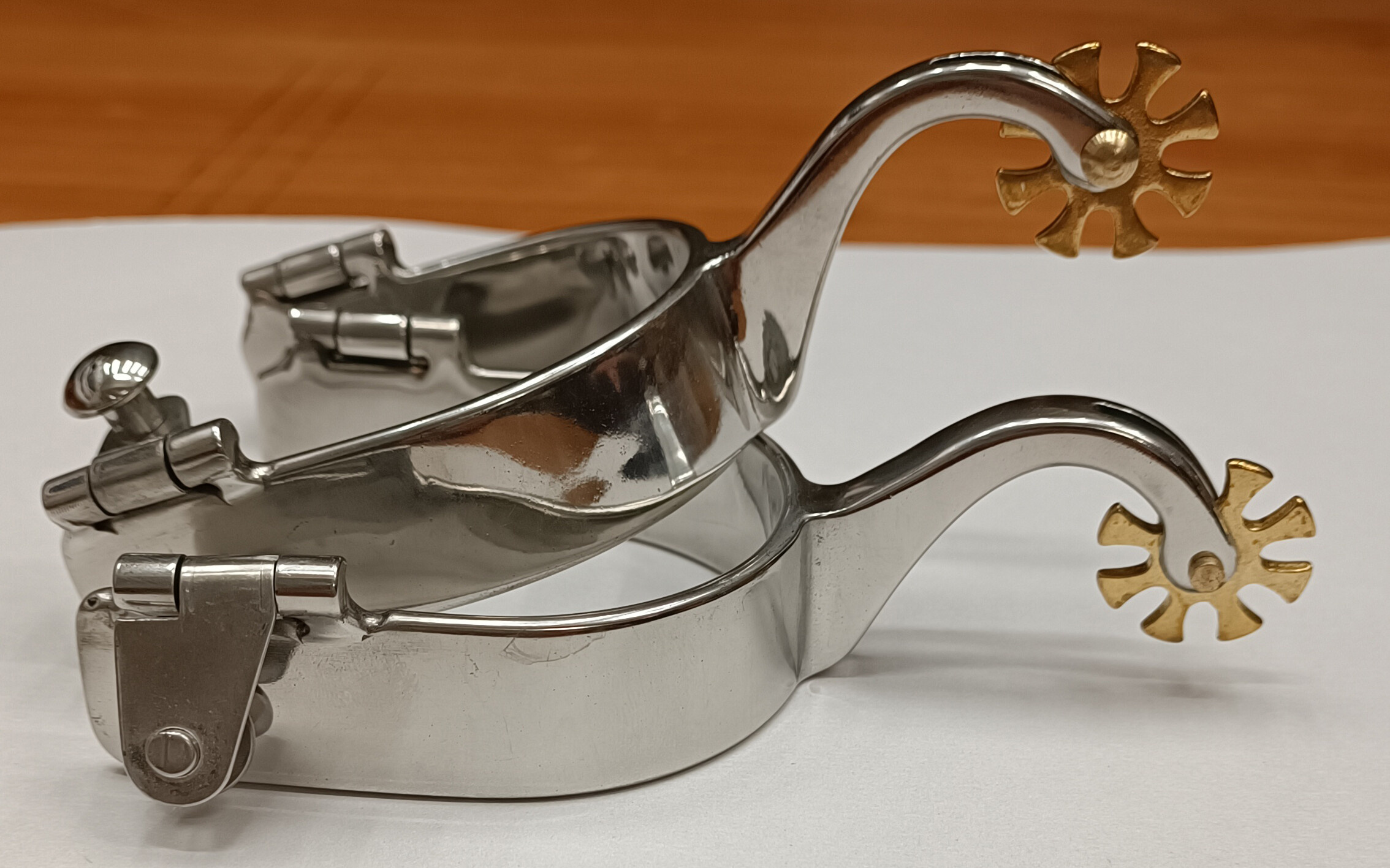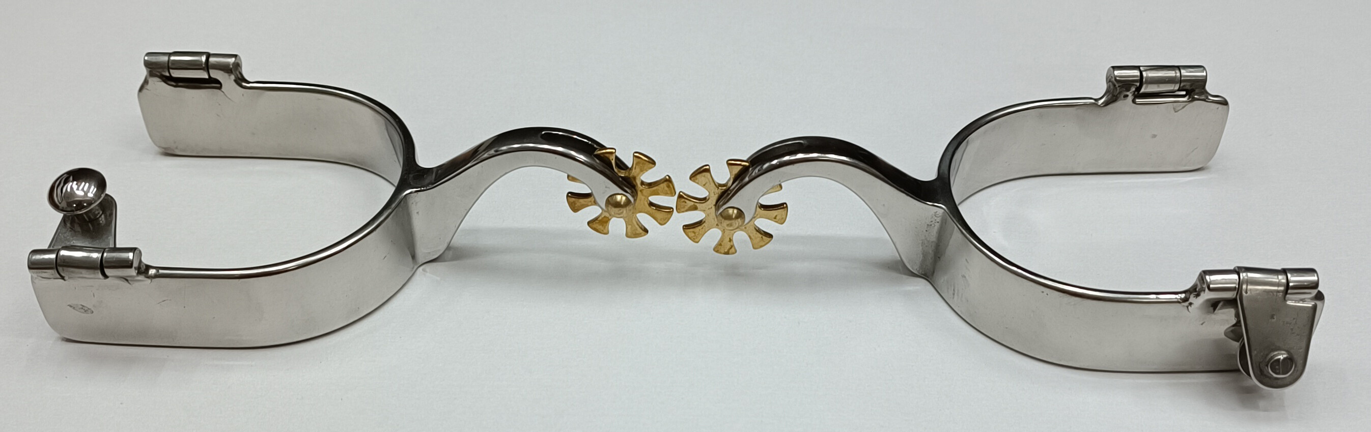 Nerezové show ostruhy s kolečkem ve tvaru slunce s osmi paprsky.