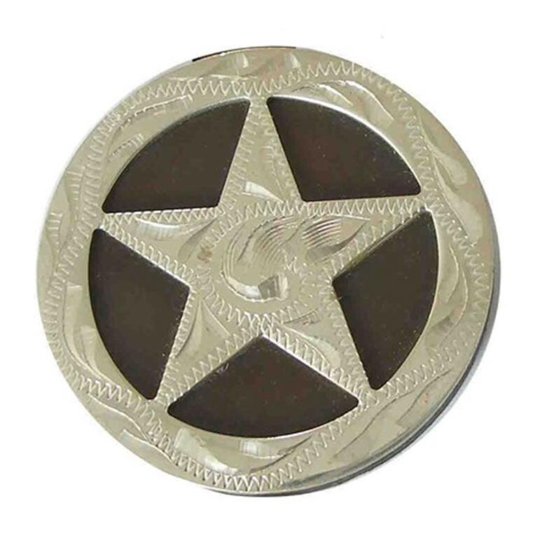 Ozdobné kovové kruhové concho (končak) na šroubek.