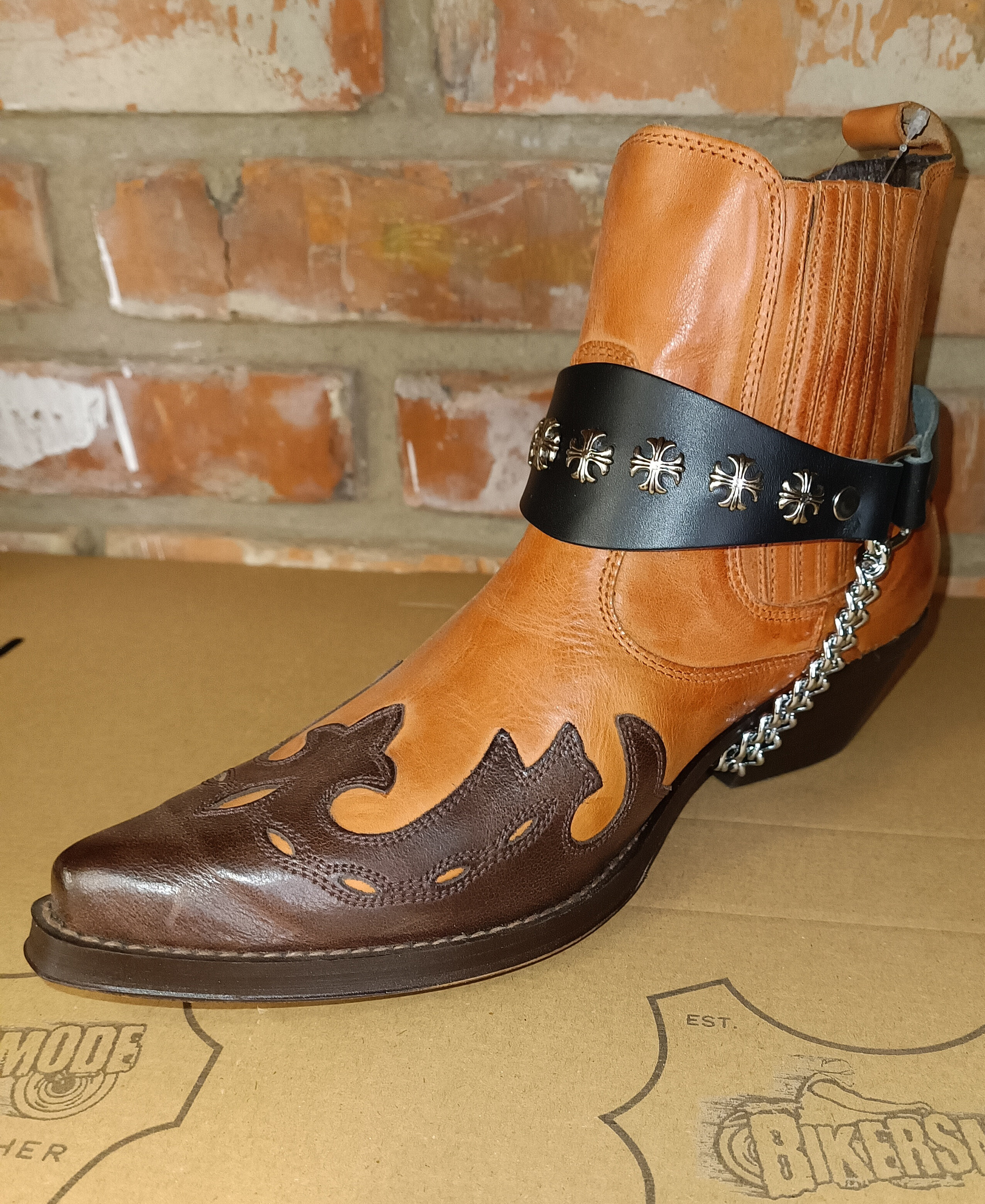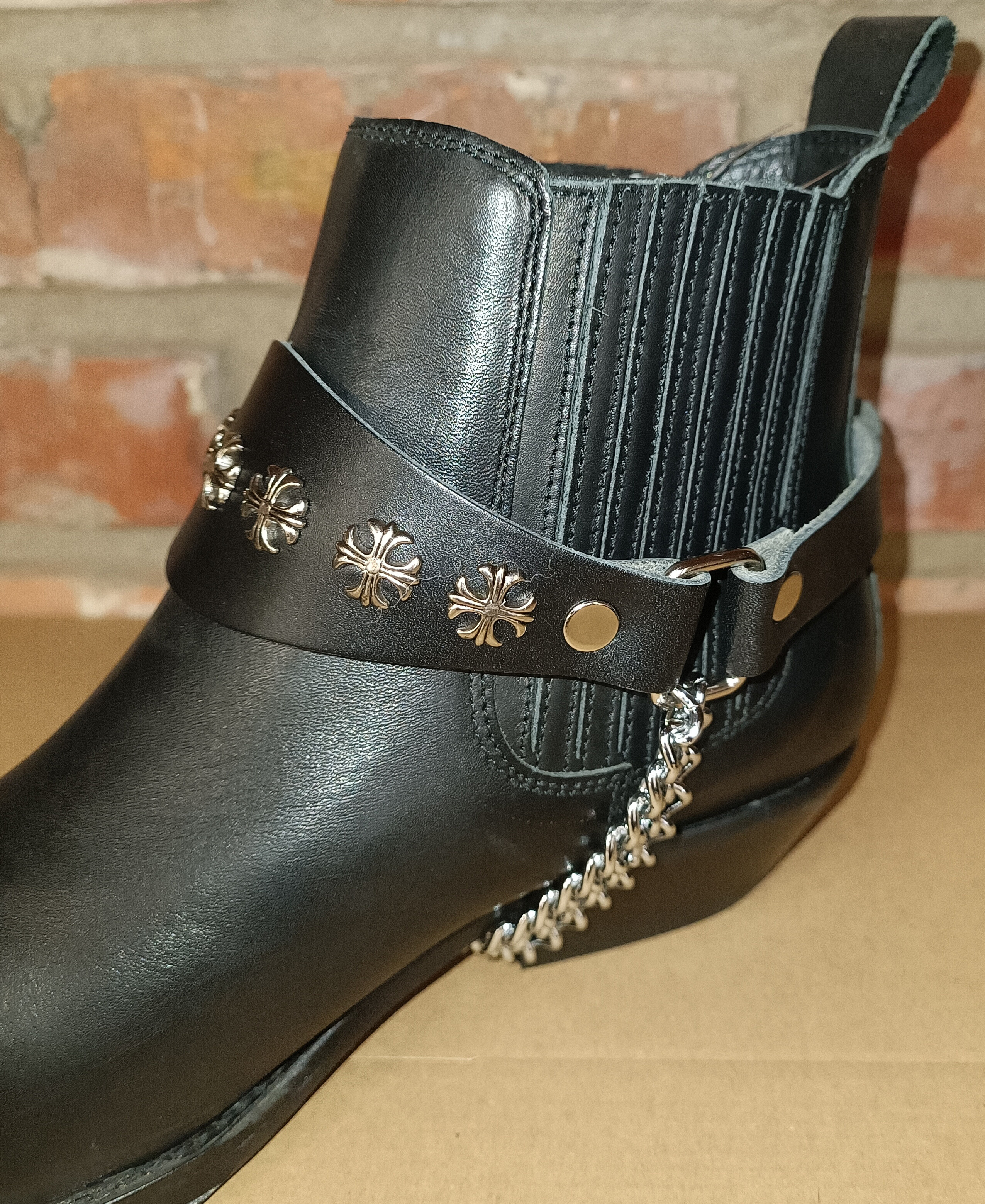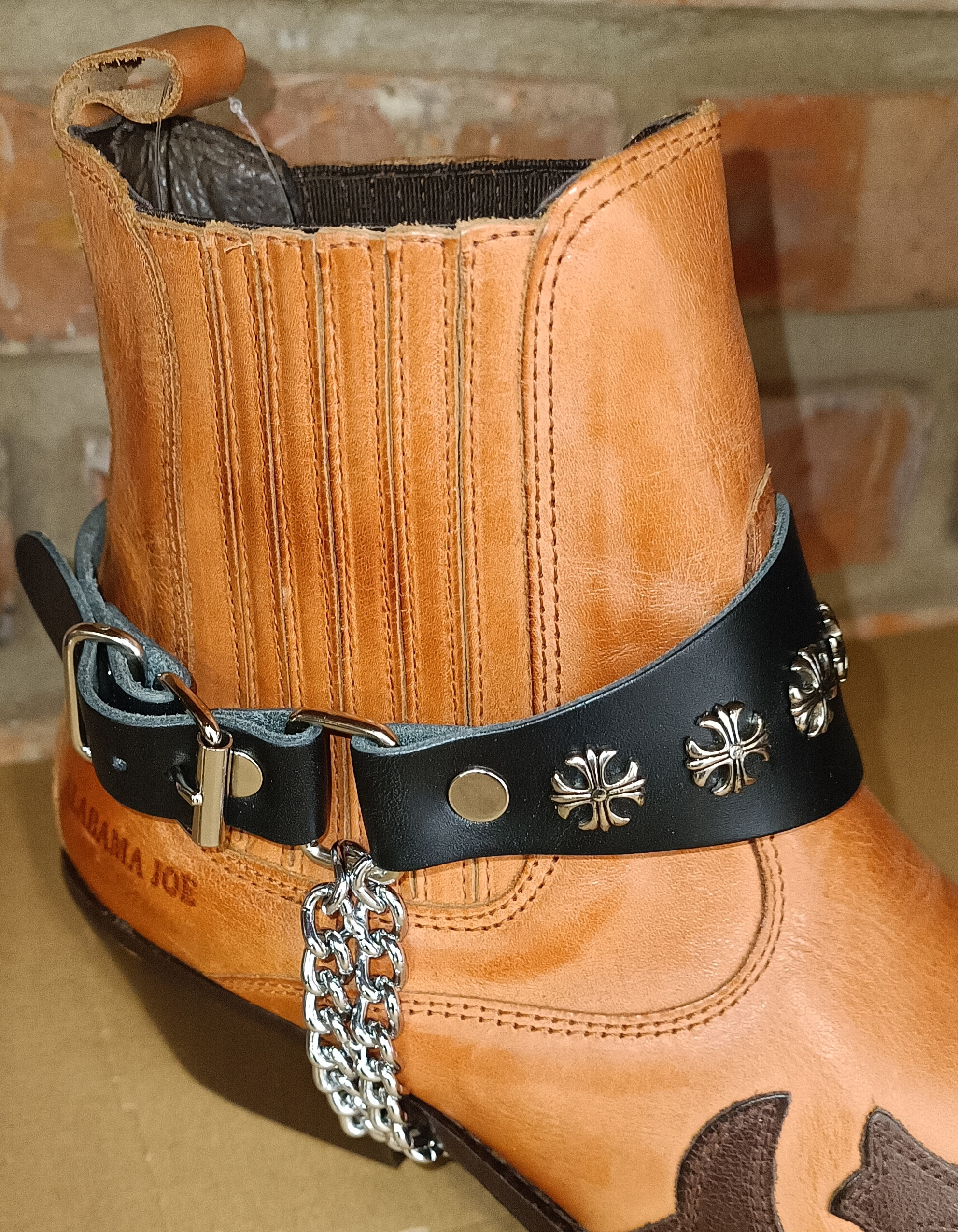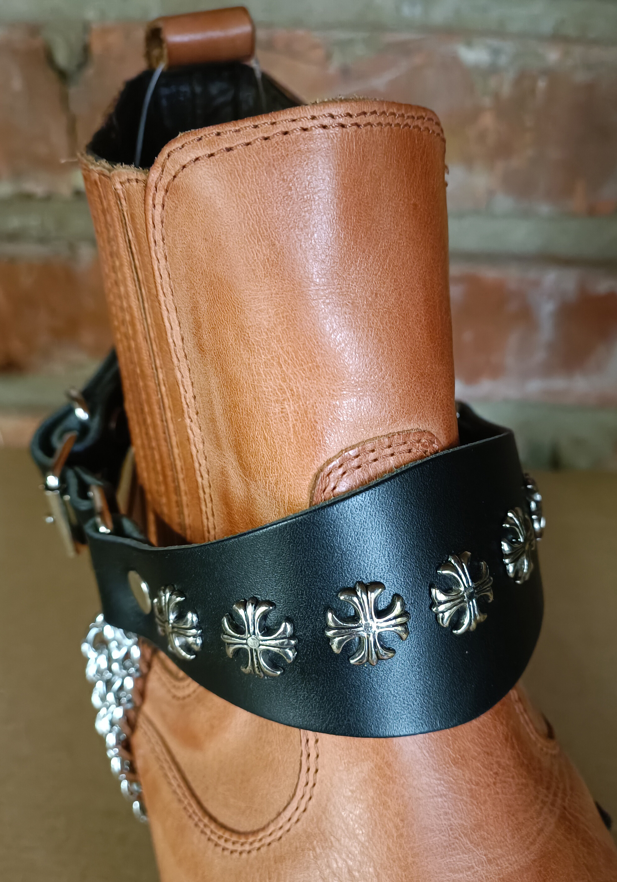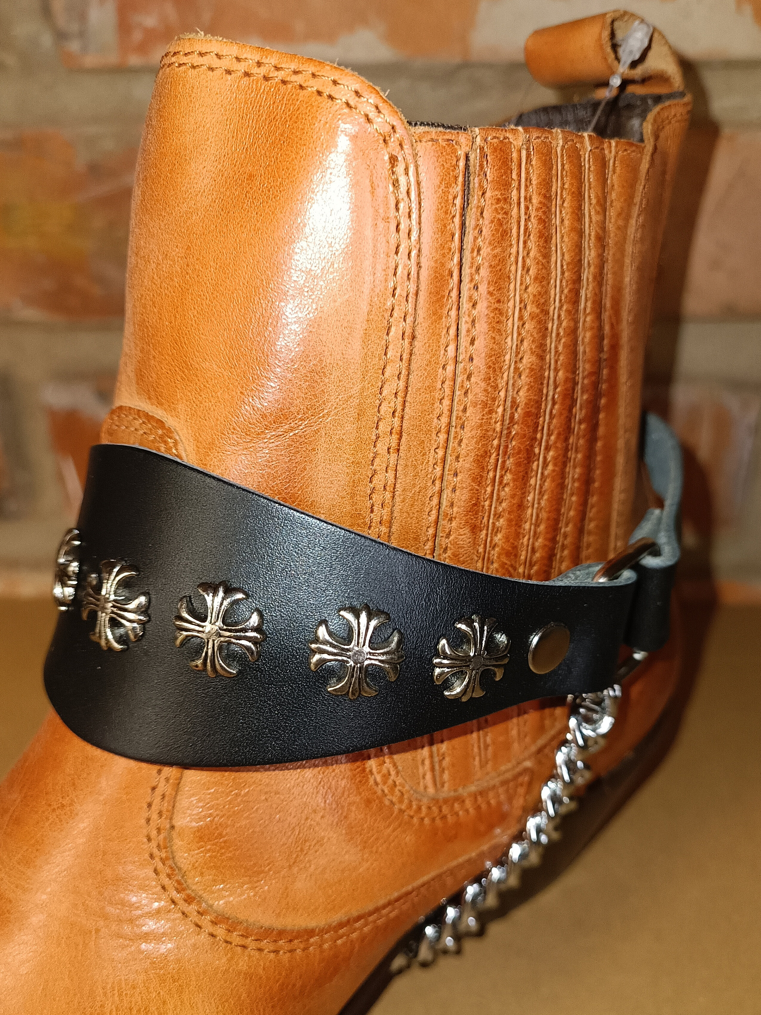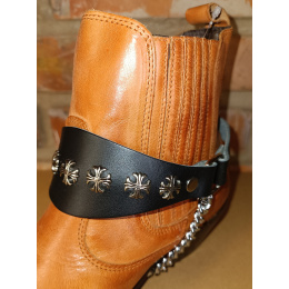 Stylové kožené ozdobné řemínky na boty s kovovým zdobením. Krásná ozdoba na boty-koně k doladění stylového oblečení.