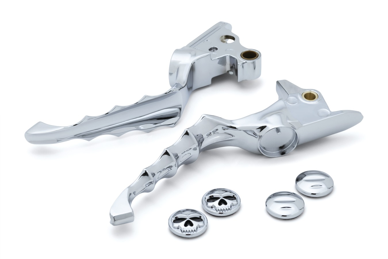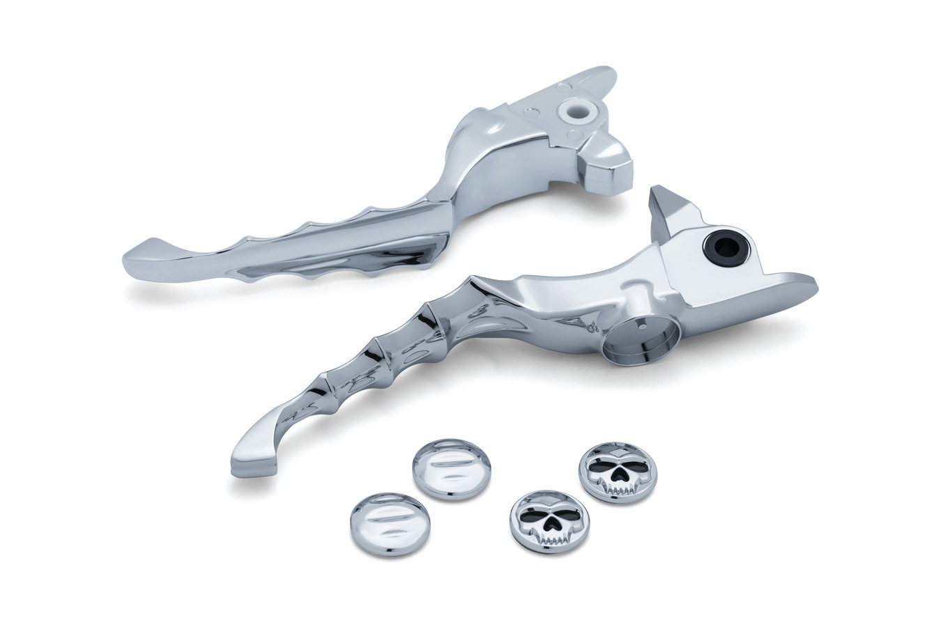 Nepřéhlednutelné stylové páčky Kuryakyn Zombie upoutají zraky každého kolemjdoucího. Pohodlné kontury a tvarování páček nabízejí vysoký pákový efekt s minimálním pohybem. Tvarovány do ergonomických drážek na prsty pro pohodlné a kontrolované používání.