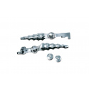 Vyrobeny z kvalitního hliníku. Dodávají se s kolečky s drážkováním nebo s lebkou pro efektní konečný vzhled, v chromové nebo černé lesklé povrchové úpravě.