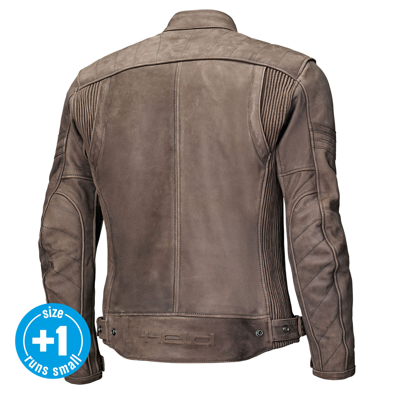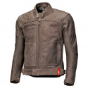 Pánská elegantní hnědá jednobarevná bunda na motorku z měkké matné kůže a s větracími otvory na zip. Prodloužené varianty Slim střih - prodloužená délka včetně rukávů.