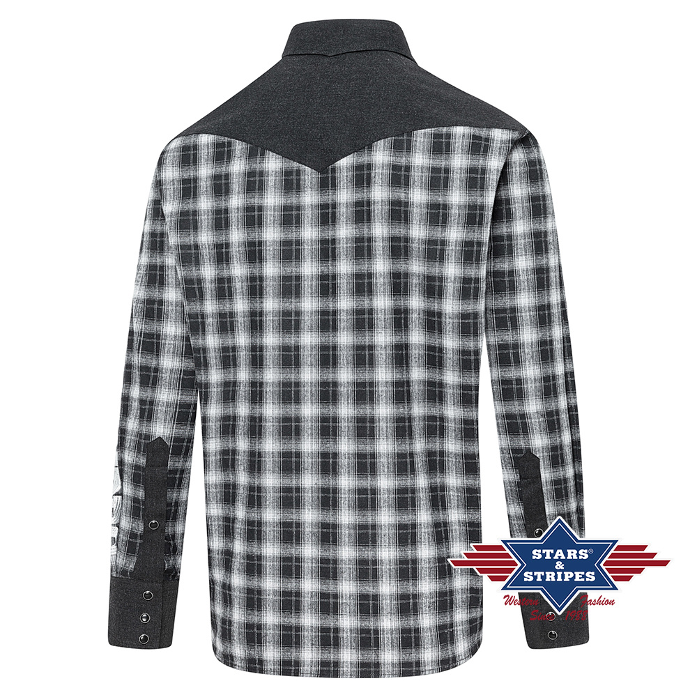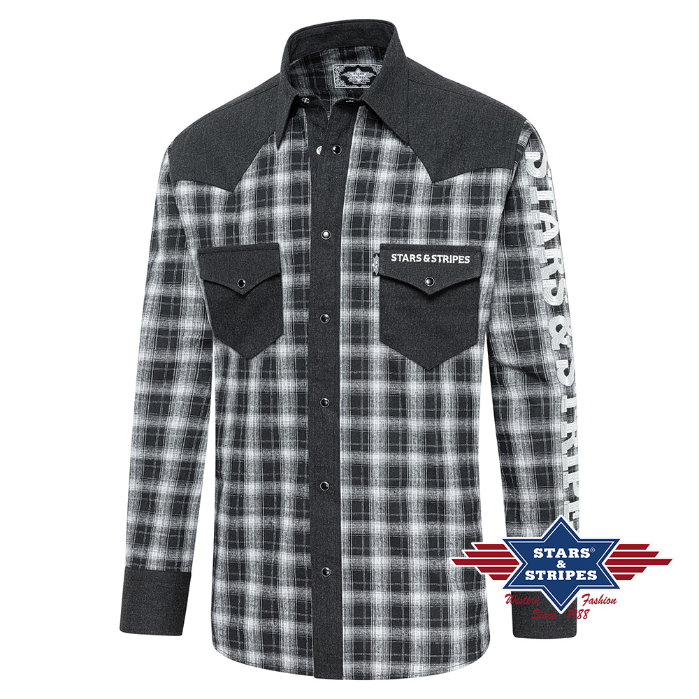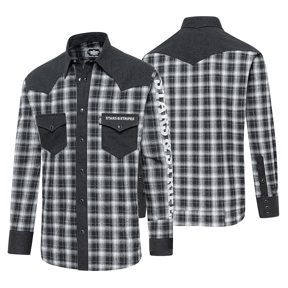 Stylová kostkovaná košile s kontrastním westernovým sedlem a našitými náprsními kapsami. Design doplňuje lem límečku, stylové druky a výšivka Stars and Stripes na levém rukávu.