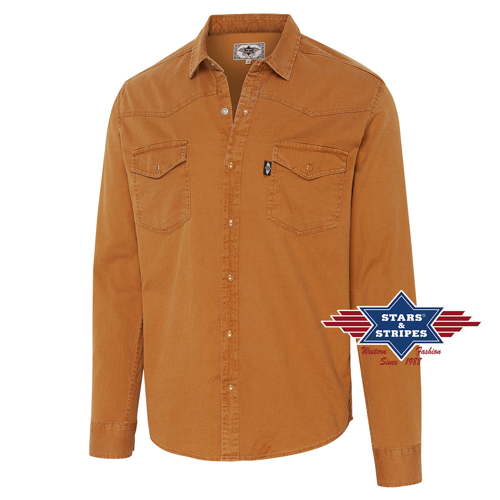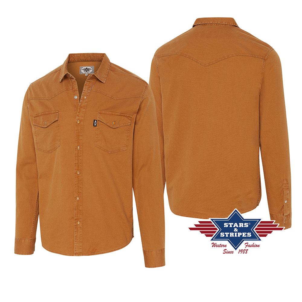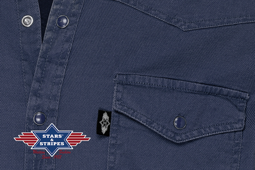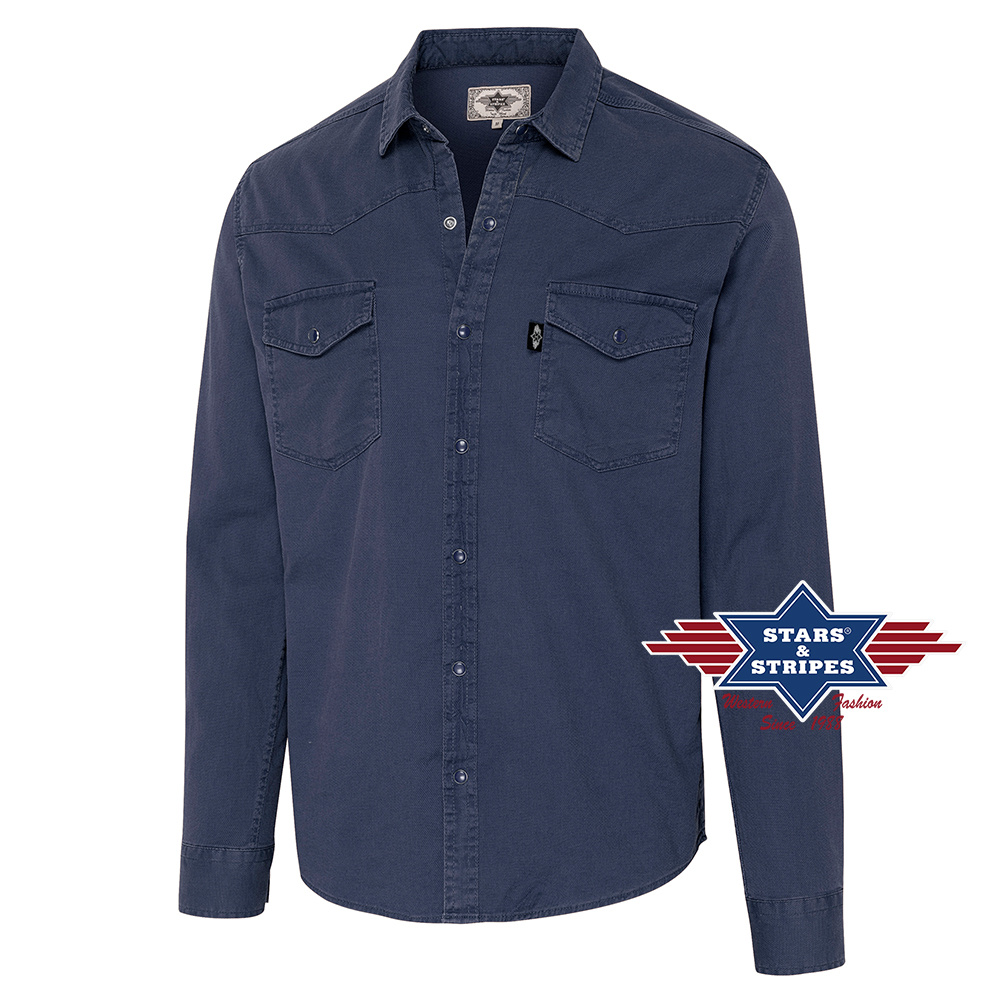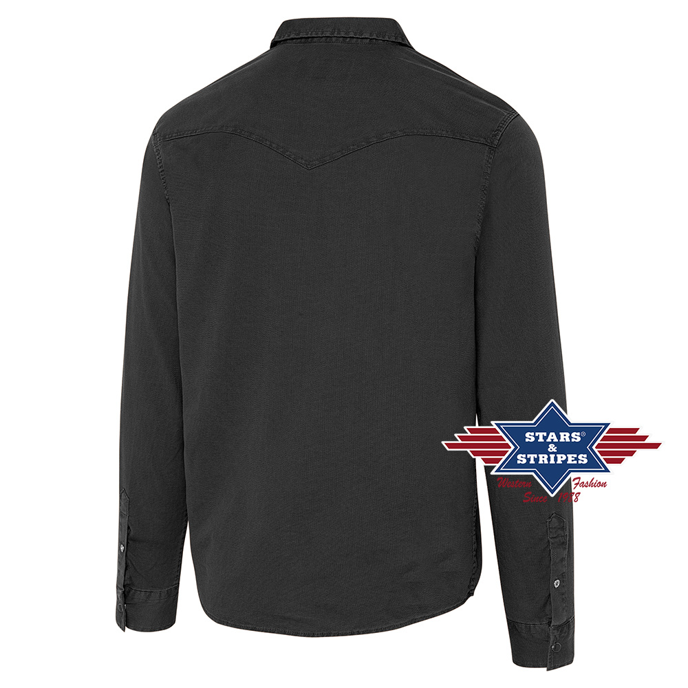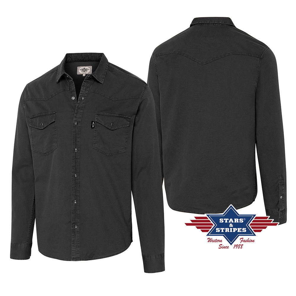 Vyjímečná tkaná westernová košile s lehkou patinou. Košili dotváří decentní westernové sedlo, patentky a našité náprsní kapsy.