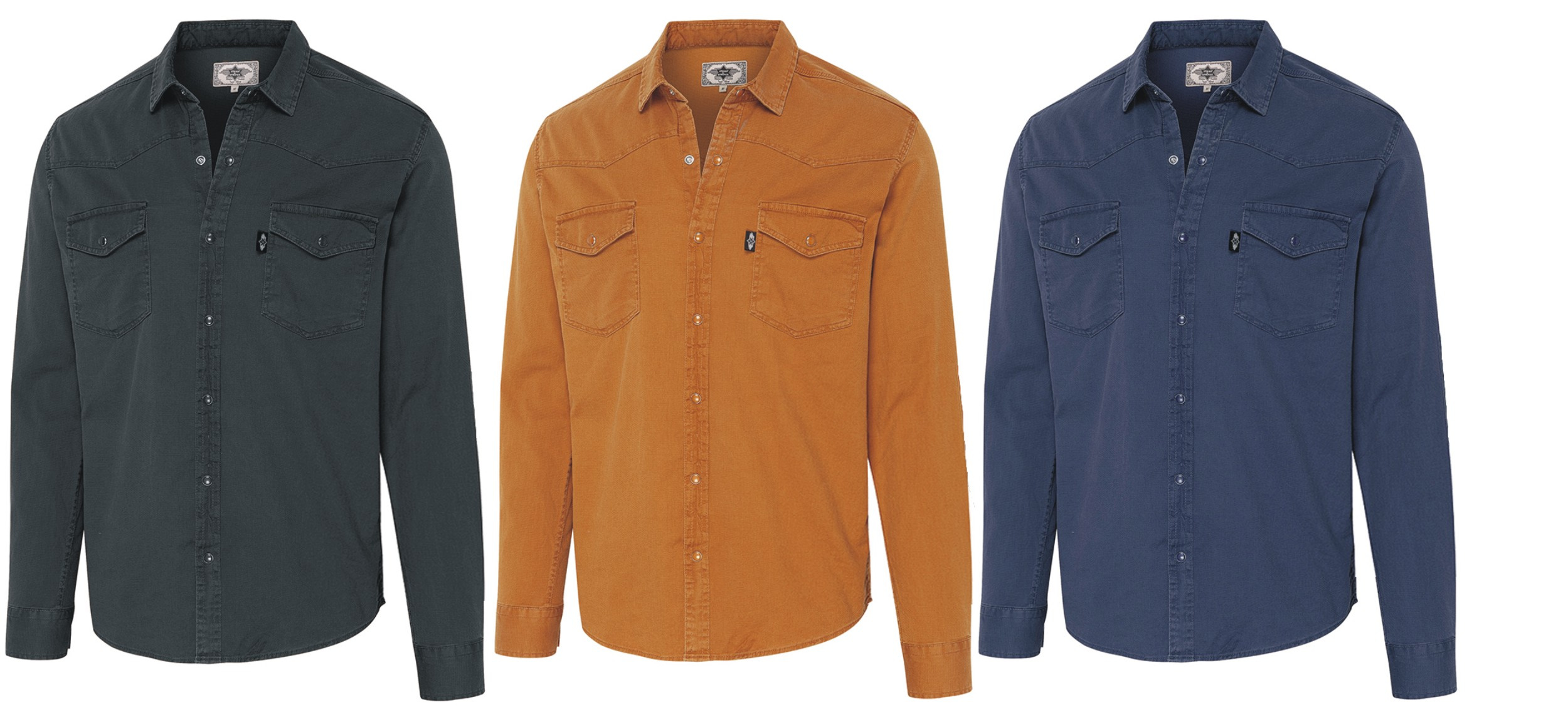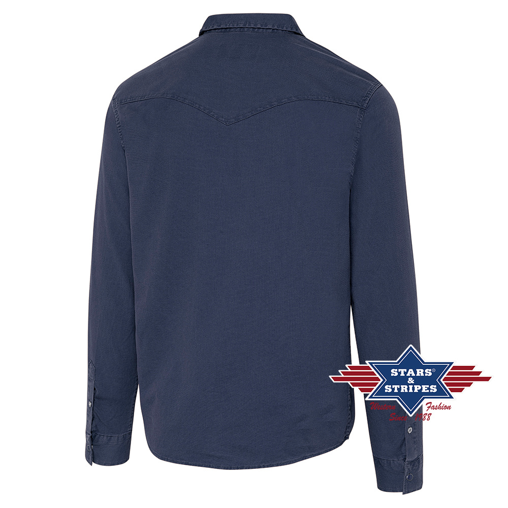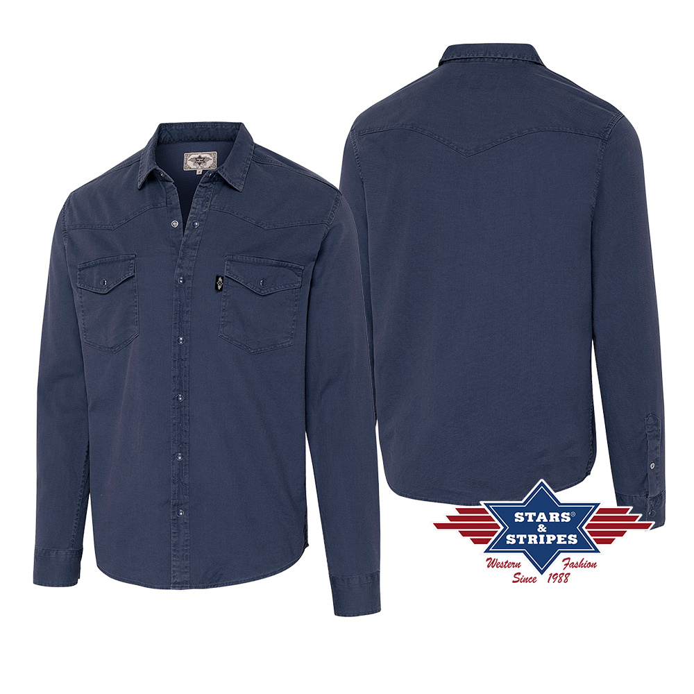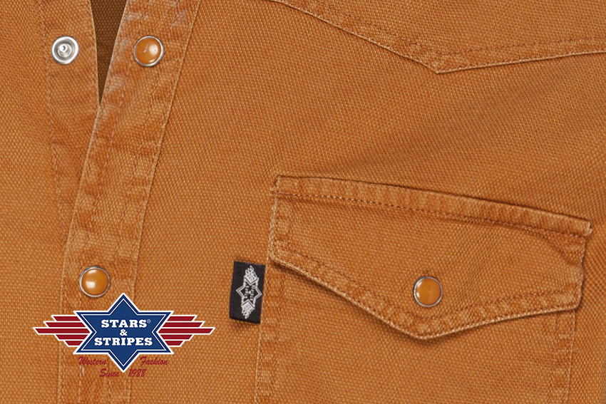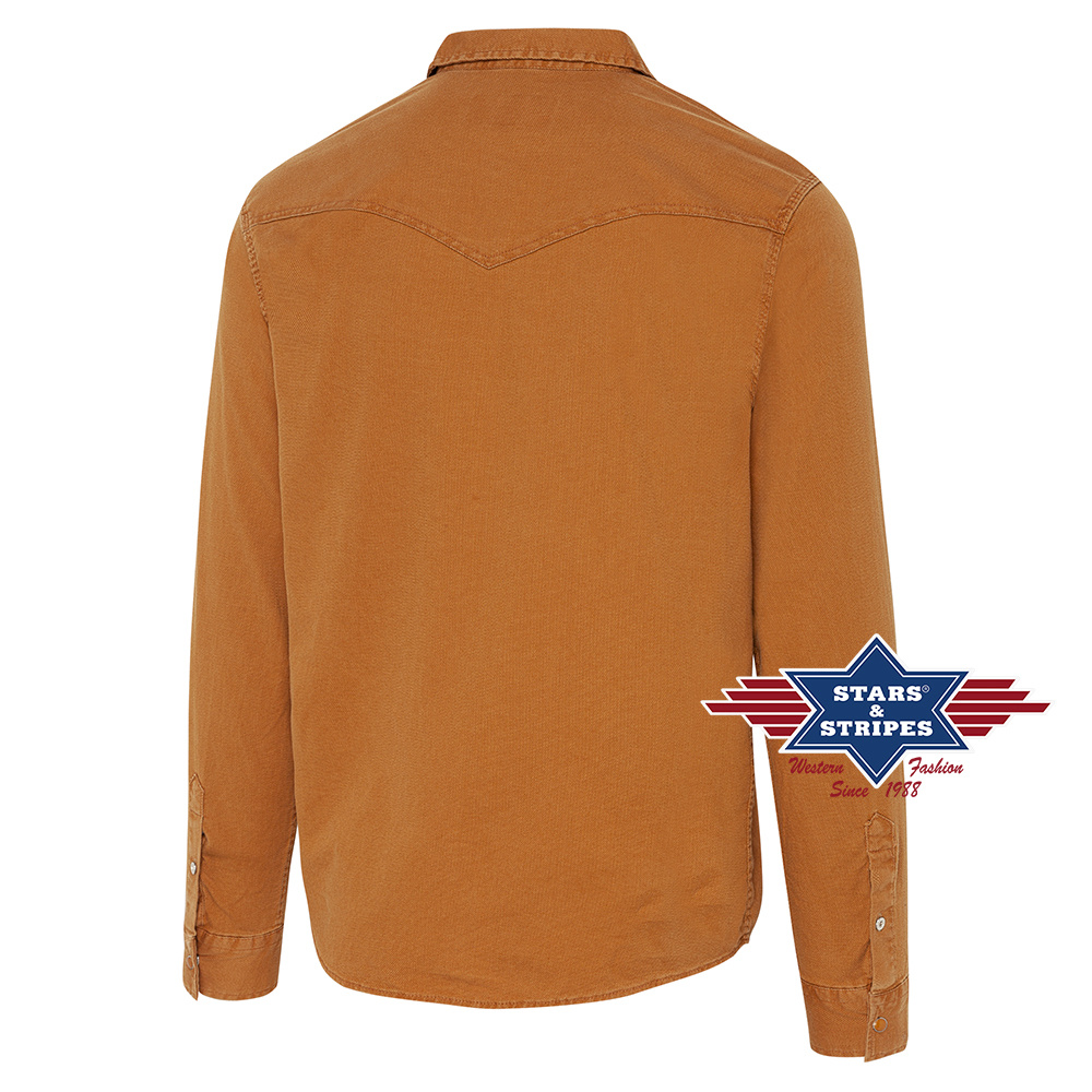 Vyjímečná tkaná westernová košile s lehkou patinou. Košili dotváří decentní westernové sedlo, patentky a našité náprsní kapsy.