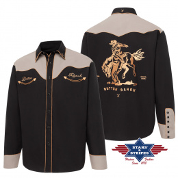 Pánská košile s westernovým sedlem z nové kolekce Yellowstone se stylovým motivem vyšitým na zádech. Zvýraznění stylu dopomáhá lemování falešných náprsních kapes a švů a stylové knoflíkové druky. Do páru s dámskou košilí Cowgirl.