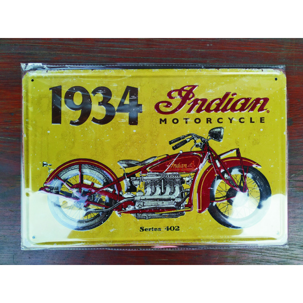 Popis produktu plechová tabulka Indian motorcycle 1934Plechová tabulka se stylovým potiskem. Velikost: 30x20 cm