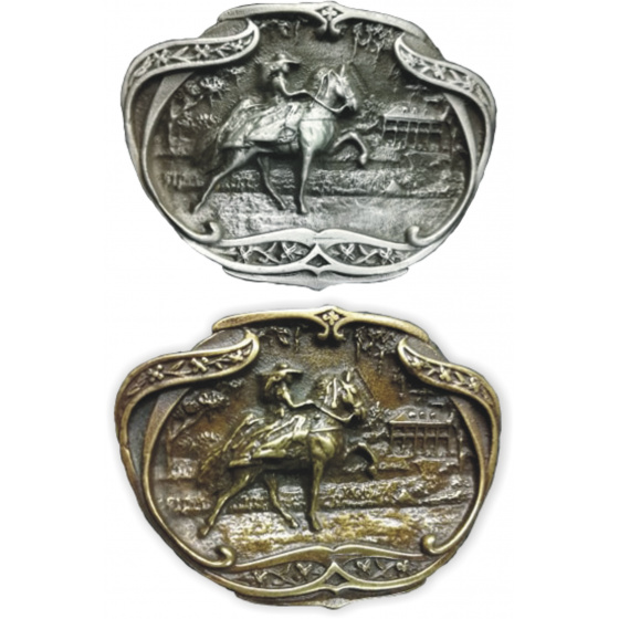 Stylová kovová přezka na opasek ve dvou barevných variantách vyrobena z kvalitního materiálu a v precizním zpracování. Pro opasky široké 4 cm.