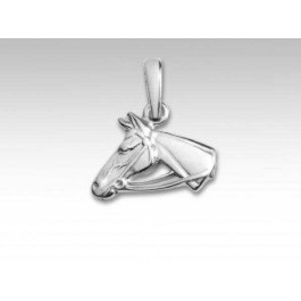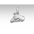 Stříbrný přívěsek ve tvaru hlavy koně. Přívěsek je vyroben ze stříbra ryzosti 925/1000 a povrchově upraven rhodiem, které dodává šperku vysoký lesk a zvyšuje jeho odolnost.