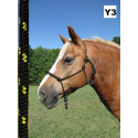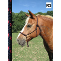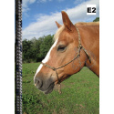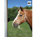 Klasická provazová ohlávka. Těžká šňůra, měkká a příjemná na dotek, ale přitom pod opakovyným zatěžováním NEPRŮTAŽNÁ, po dobu používání neměnící zásadním způsobem své vlastnosti.