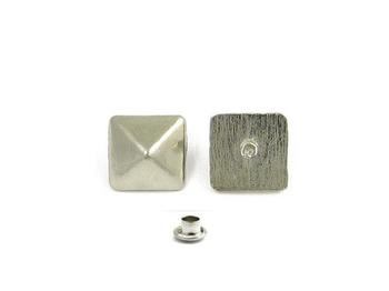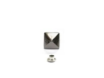 Kovová pyramida vhodná ke zdobení kožených výrobků, jako jsou náramky, opasky, ap. vhodná i na středně hrubé kůže. Uchycení k materiálu pomocí nýtu.