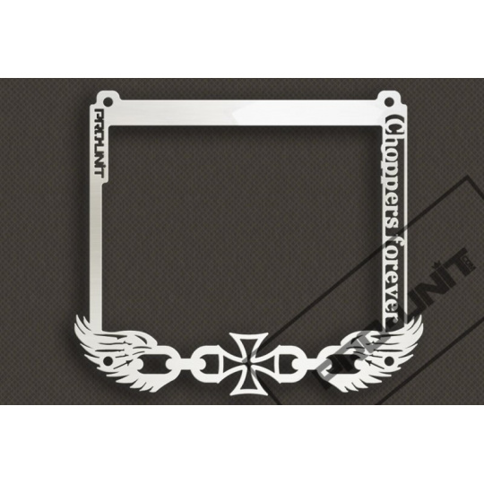 Ozdobný rámeček SPZ je vyroben z leštěné, nerezové oceli. Součástí rámku je ocelová podložka pod značku a čtyři nerezové šrouby. Rámek je zhotovený na přesný rozměr motocyklových SPZ používaných na Slovensku.