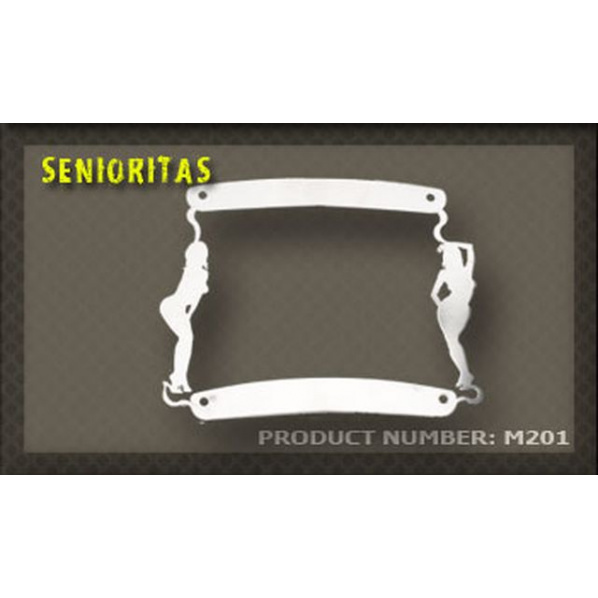 Ozdobný rámeček je vyroben z leštěné nerezové oceli. Součástí rámečku je ocelová podložka pod značku a čtyři nerezové šrouby. Rámeček je zhotovený na přesný rozměr motocyklových SPZ používaných v České republice.