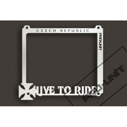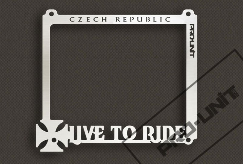 Ozdobný rámeček je vyroben z leštěné nerezové oceli. Součástí rámečku je ocelová podložka pod značku a čtyři nerezové šrouby. Rámeček je zhotovený na přesný rozměr motocyklových SPZ používaných v České republice.