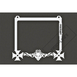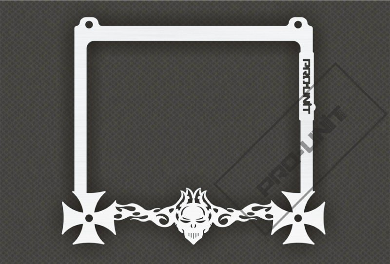 Ozdobný rámeček je vyroben z leštěné nerezové oceli. Součástí rámečku je ocelová podložka pod značku a čtyři nerezové šrouby. Rámeček je zhotovený na přesný rozměr motocyklových SPZ používaných v České republice.