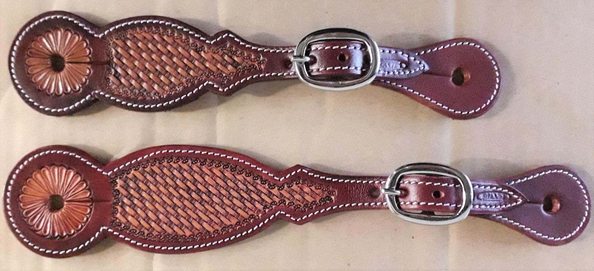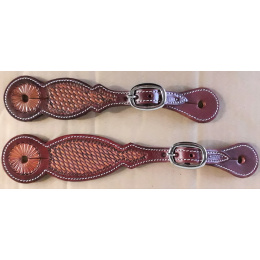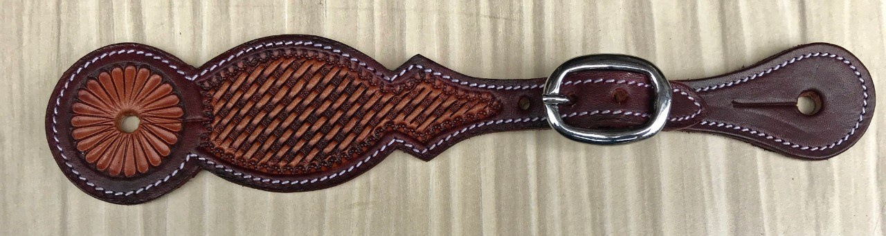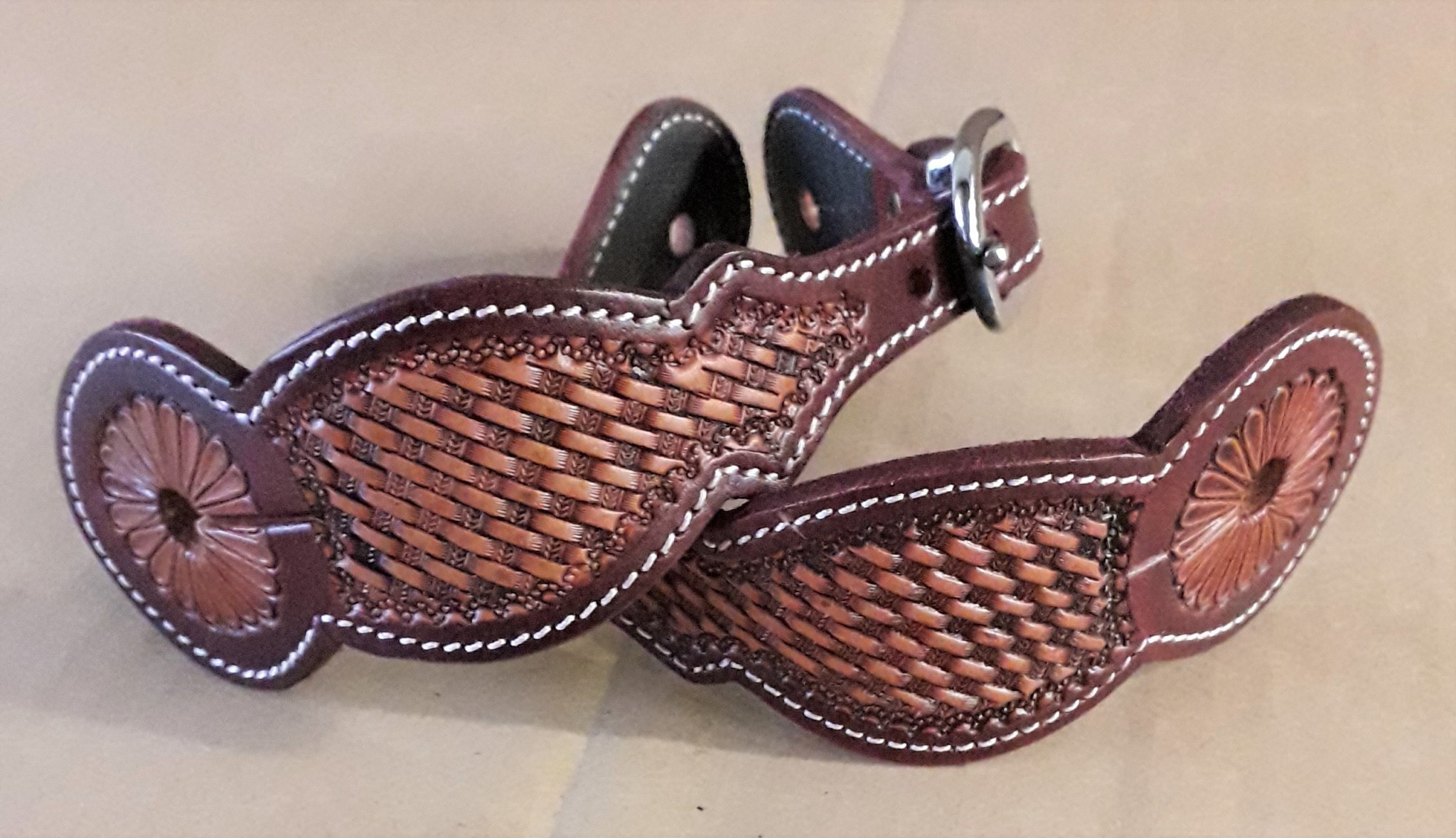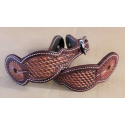 Westernové kožené řemínky k ostruhám zdobené basketem, nerezové kování.
