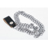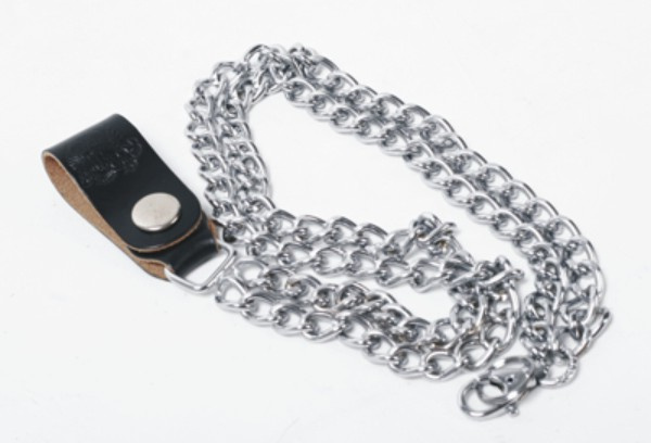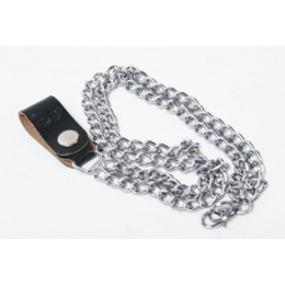 Dvojitý řetízek chromovaný. Jeden konec zakončen karabinou k upevnění peněženky, klíčů ap., druhý konec ukončen koženým poutkem s cvokem pro snadné připnutí na opasek.